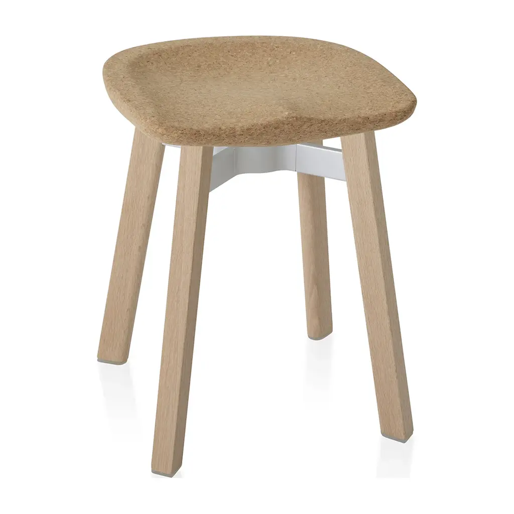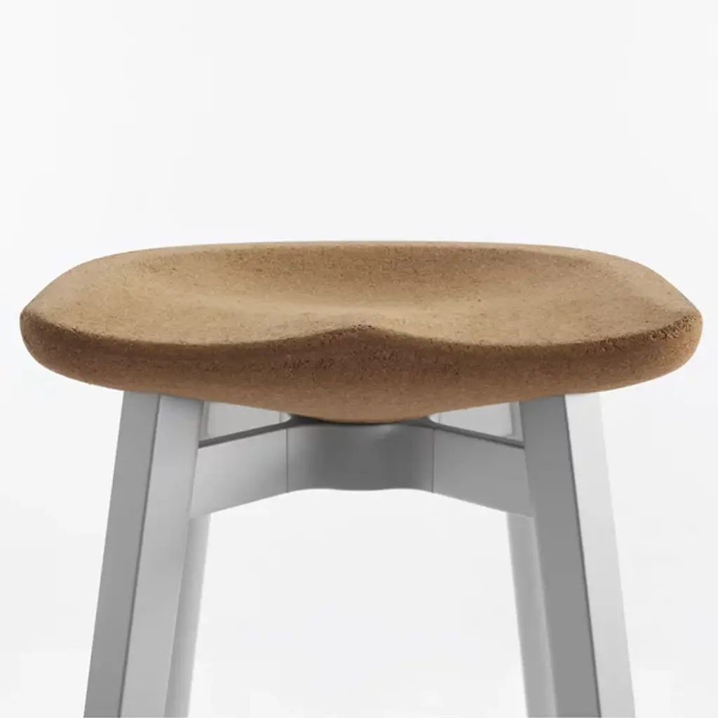 The Su Small Stool, Cork Seat by Emeco is accentuated by a simple and refined silhouette, inspired by the Japanese aesthetic of 'su'. Like others in the collection, the focus of the stools design is sustainability. This version of the Su stool is designed with a recycled aluminum base and biodegradable cork top. The Su Small Stool, Cork Seat is suitable for modern-contemporary environments.