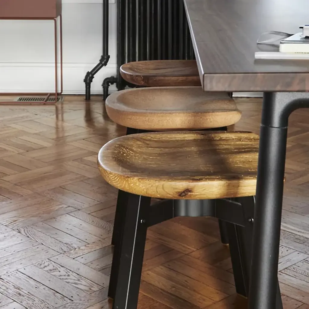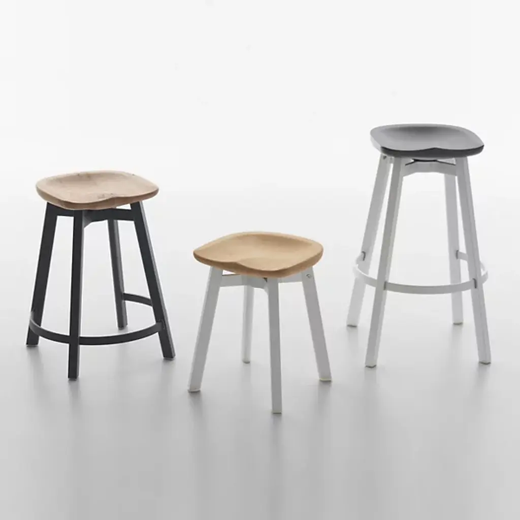 Emeco produced the Su Small Stool, Reclaimed Oak Seat in inspiration of the Japanese aesthetic 'su'. The application of su in Emeco's designs challenges them to engineer furnishings from traditional categories, with strong eco-conscious materials. From fruition to final production, Emeco has re-invented their historical recycled aluminum seating to carry refreshing characteristics, such as reclaimed oak. Su Small Stool, Reclaimed Oak Seat, a genius application of nature and industrial materials, blossoms in timeless environments.