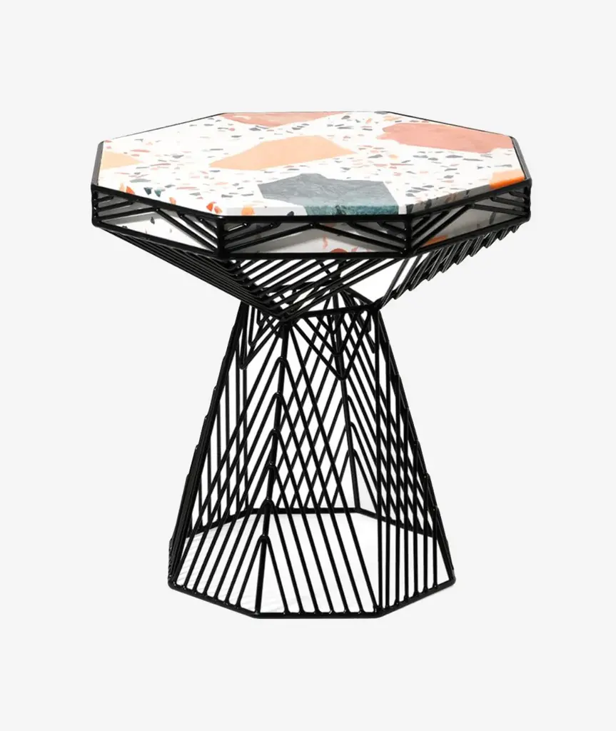 The ultimate in versatile modern wire furniture, The SwitchTable/Stool is a two in one piece that works as a stool or table. The table top features a padded leather seat on one side, and a flat table surface on the other. Also available in the Terrazzo Top that fits snugly into the wire frame. Options are everything with this customizable wire table and stool.