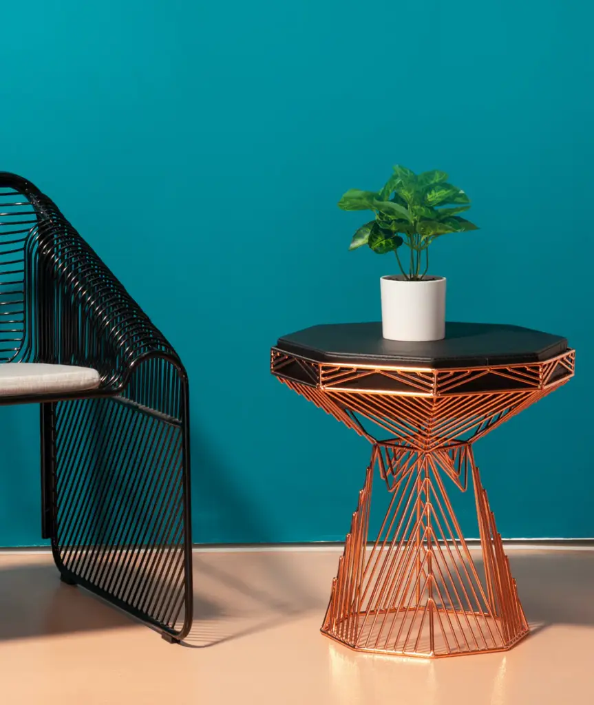 The ultimate in versatile modern wire furniture, The SwitchTable/Stool is a two in one piece that works as a stool or table. The table top features a padded leather seat on one side, and a flat table surface on the other. Also available in the Terrazzo Top that fits snugly into the wire frame. Options are everything with this customizable wire table and stool.
