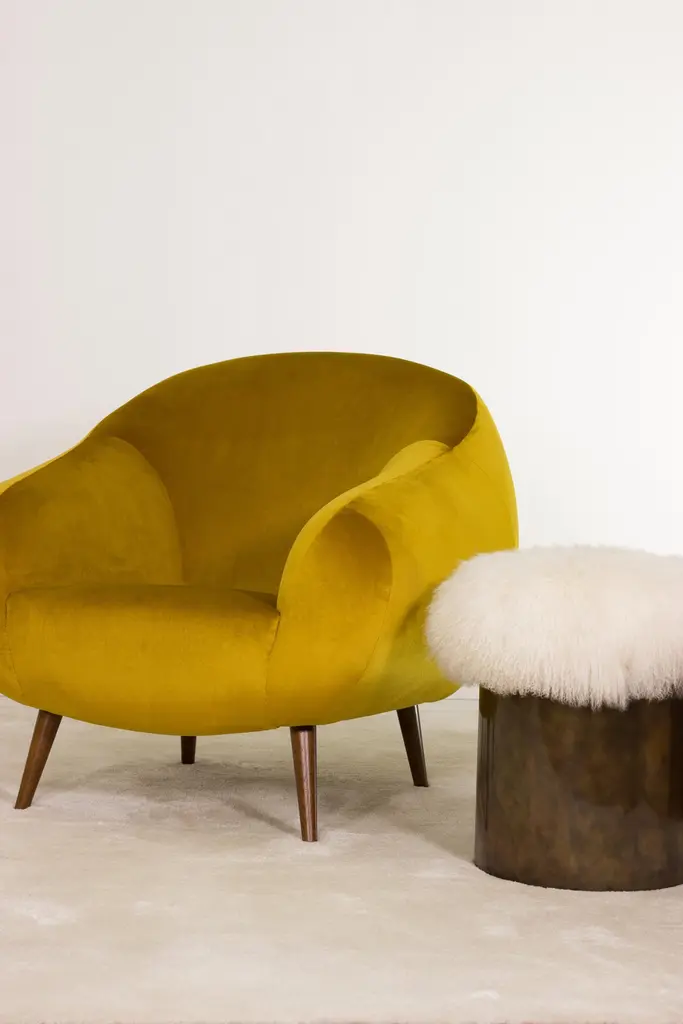 Ludwig Van Beethoven is recognized as one of the most exceptional composers of all time. As an ode to the genius behind the music, the symphony stool captures the tumultuous essence of his famous composition, the symphony no. 5.Beethoven’s exceptional artistic creation, with surprising transitions between the dramatic vibrations and the melodic softness, is represented by two elements of the stool. The irreverent Mongolian lamb fur meets the musical tension felt during the 1st moment of the symphony and contrasts with the smooth irregular movements of the base in oxidized brass that recreate the most melodic chords. Product details:Top: Mongolian Lamb fur ref. white.Base: Handcrafted in rustic oxidized brushed brass with gloss varnish. Product options:Top: Other references of Mongolian Lamb fur.Base: Polished, brushed, oxidized brushed or aged brushed brass/copper/steel.Weight:10Kg 22,1 lbsMade to order. Custom sizes and other finishes are available under request. Designed by Joana Santos Barbosa, 2018. Handmade in Portugal.