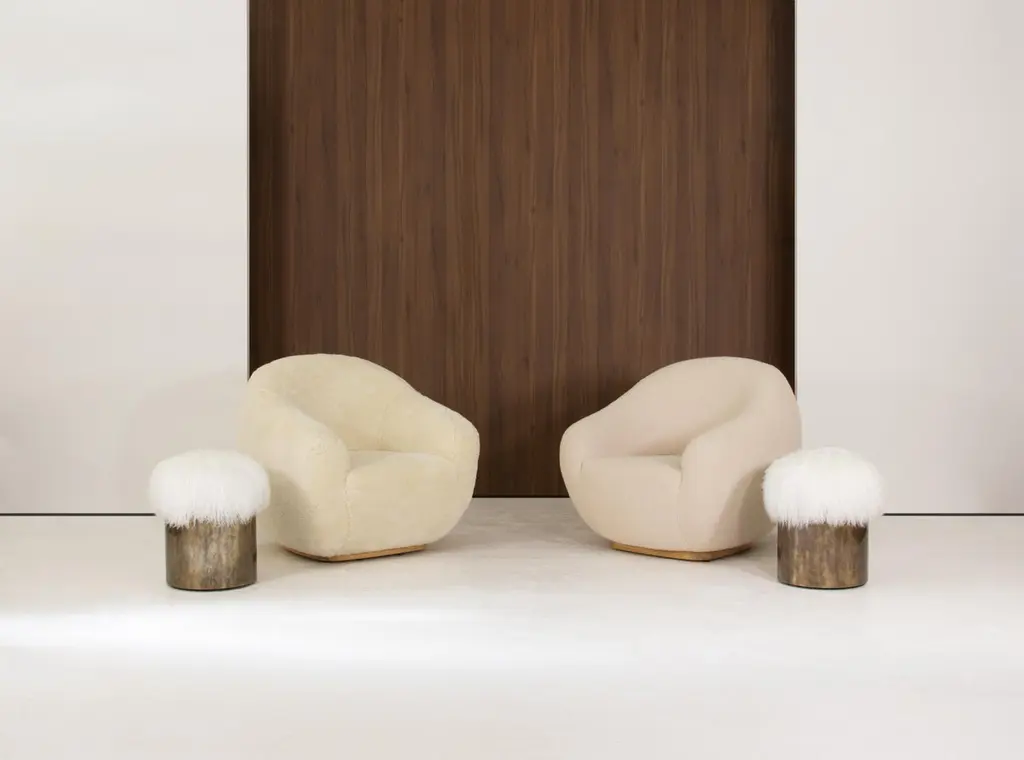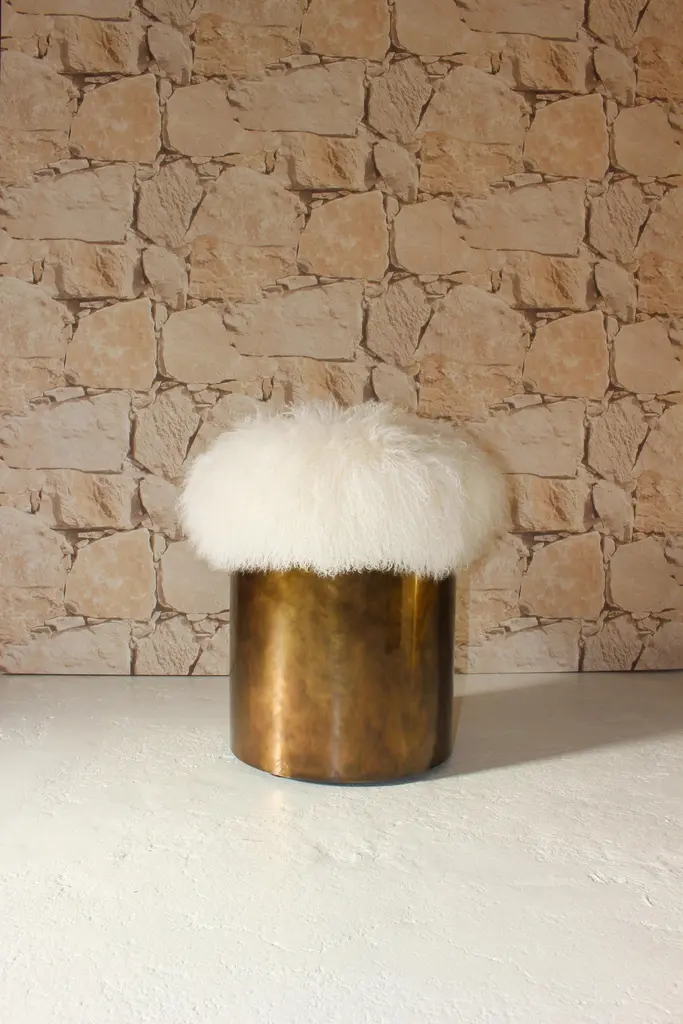 Symphony Stool, Fur And Rustic Brass, Insidherland By Joana Santos Barbosa