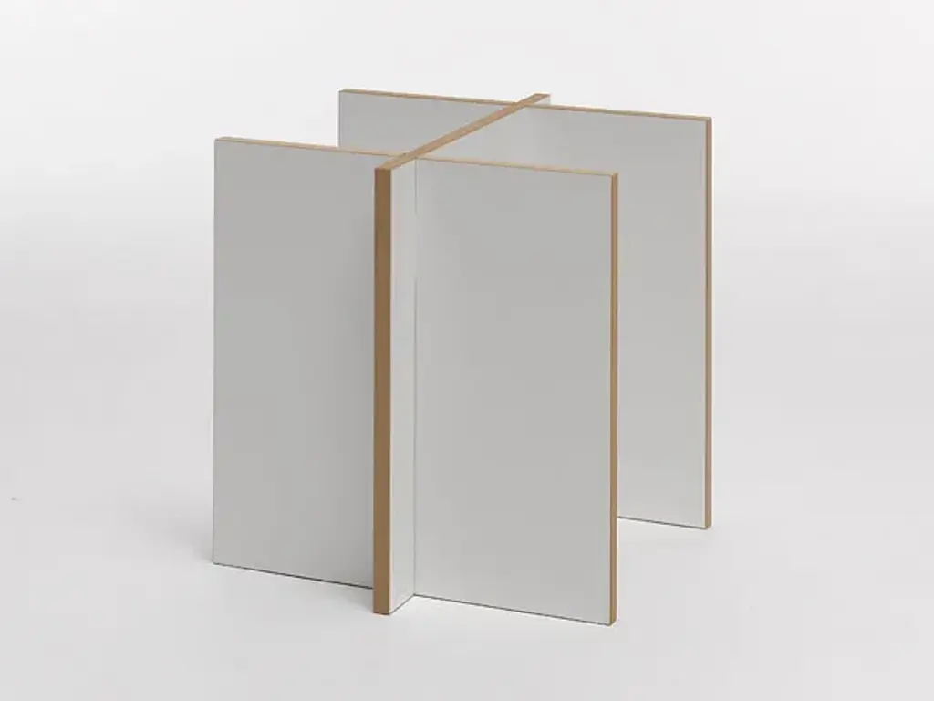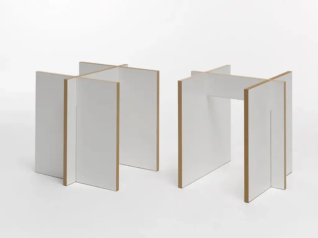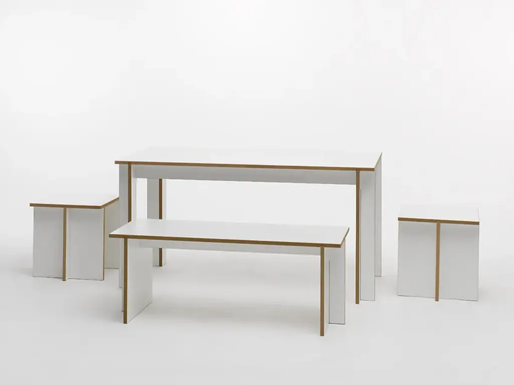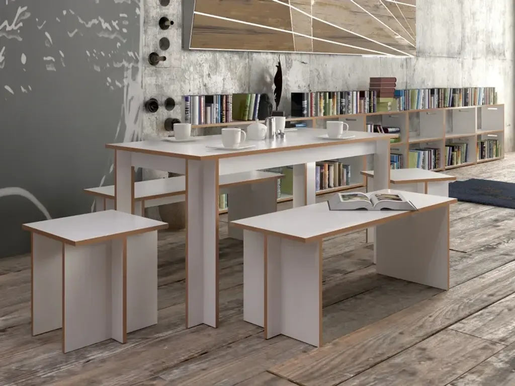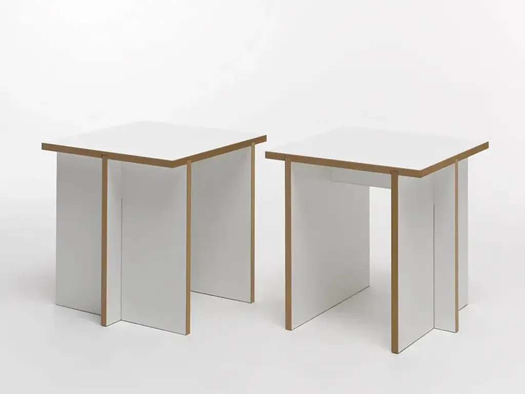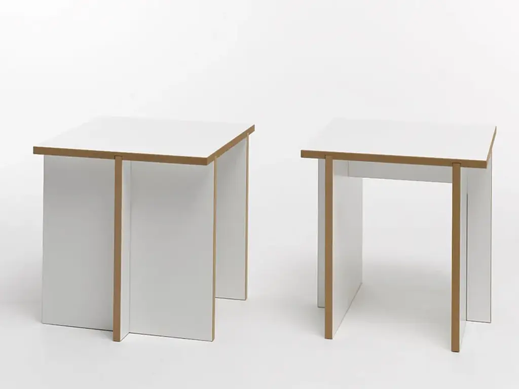 The detachable stool, consisting of only four individual parts,suitably to the table 59,1 x 29,5 inches and 29,5 x 29,5 inches. The stool can be plugged together simply and makes nevertheless a high stability possible of the construction. For the assembly no tools are needed. Folded up all components fit into a cardboard box. Material MDF melamin resin coated, whiteSize L. 17.7'' x W. 17.7'' x H. 17.7''