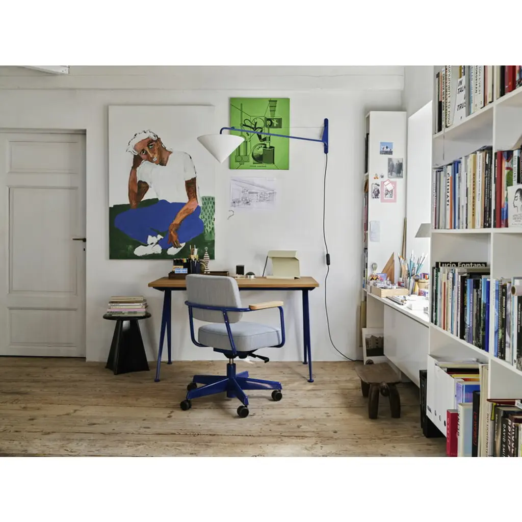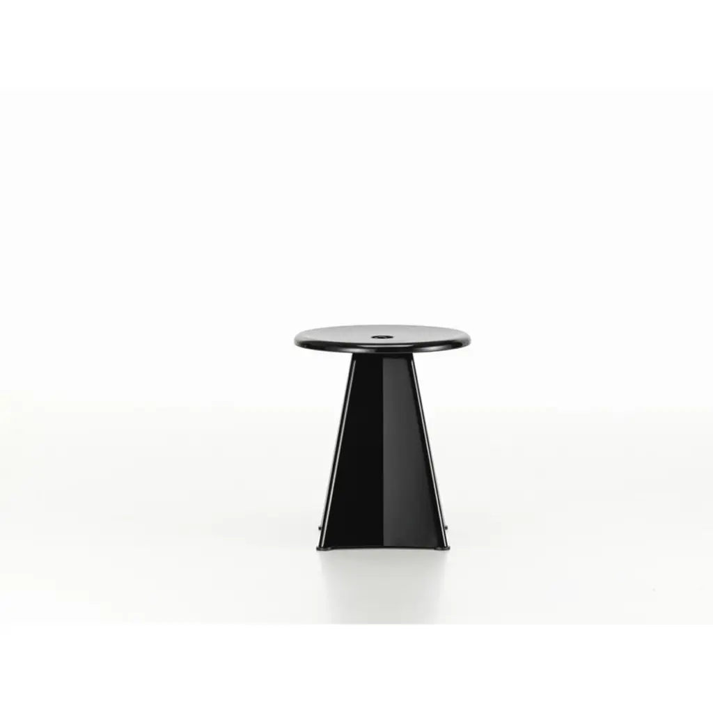 Vitra's Tabouret Métallique was originally designed by Jean Prouvé in 1936 and reissued by Vitra in 2022. Tabouret Métallique, which is French for "metallic stool", consists of a round seat and a fascinating angular leg structure, which Prouvé later also used in his Trapèze table. The Tabouret Métallique stool also works perfectly as a small side table, for example, next to a lounge chair, and it has plastic gliders on the bottom to protect the floor from scratches.