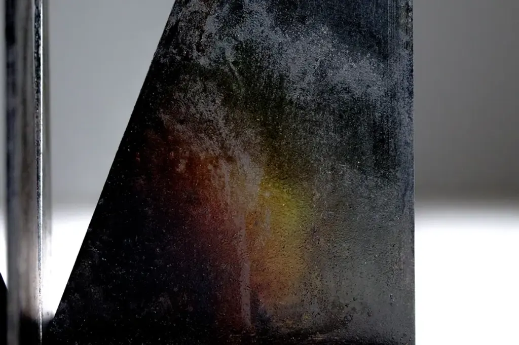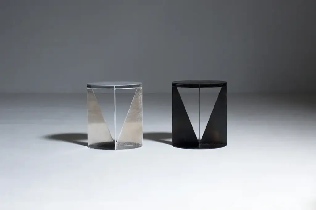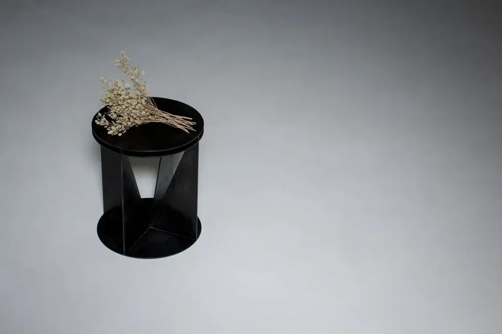 TAI is the first seating furniture by MAZANLI. It is cut and welded from a single aluminium or steel plate by laser. The silver uncoated as well as black and white powder-coated versions are made from aluminium. However, there is also an exciting steel variant, with a very striking surface which is achieved by "bluing". Bluing is a type of surface treatment that has been used for centuries to protect iron from rusting. It creates a black layer but through which the colour spectrum that arises when steel is heated shimmers easily. The seat cushion is then applied to the aluminium or steel base. There are several velvet and felt variants for the seat cover to choose from. The different seat cover variants can be taken from one of the pictures / the colour chart.