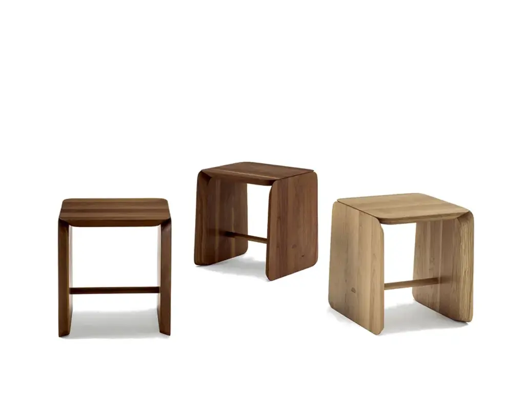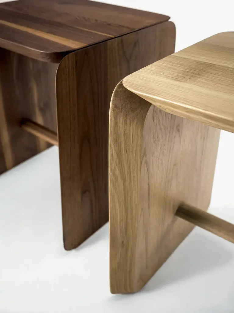 Tak is a stool completely made of solid wood, composed of three pieces with smoothed sides, jointed together and with footrest inserted between the legs.AVAILABLE FINISHES:A1: walnut without knots, walnut with knotsA2: oak without knots, oak with knotsA4: knotless oak pigmented: milk white, total blackpigmented oak with knots: milk white, total blackA7: cedarA9: cedar contract finish