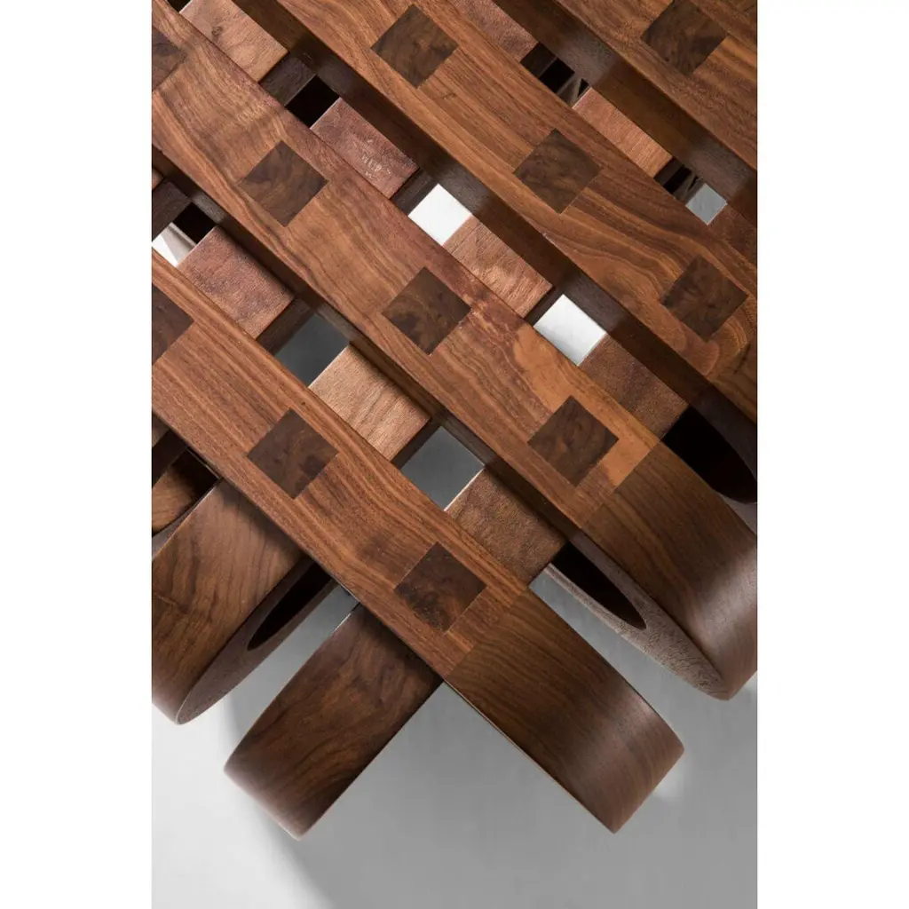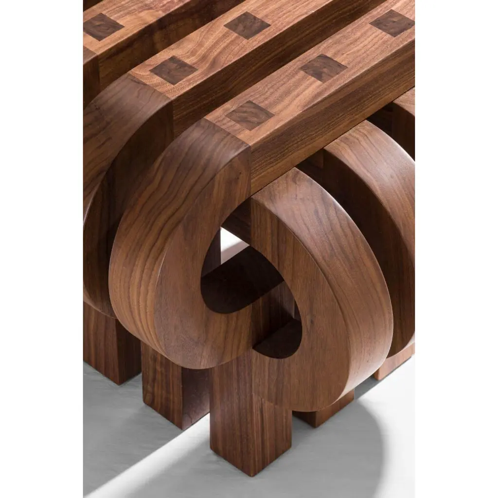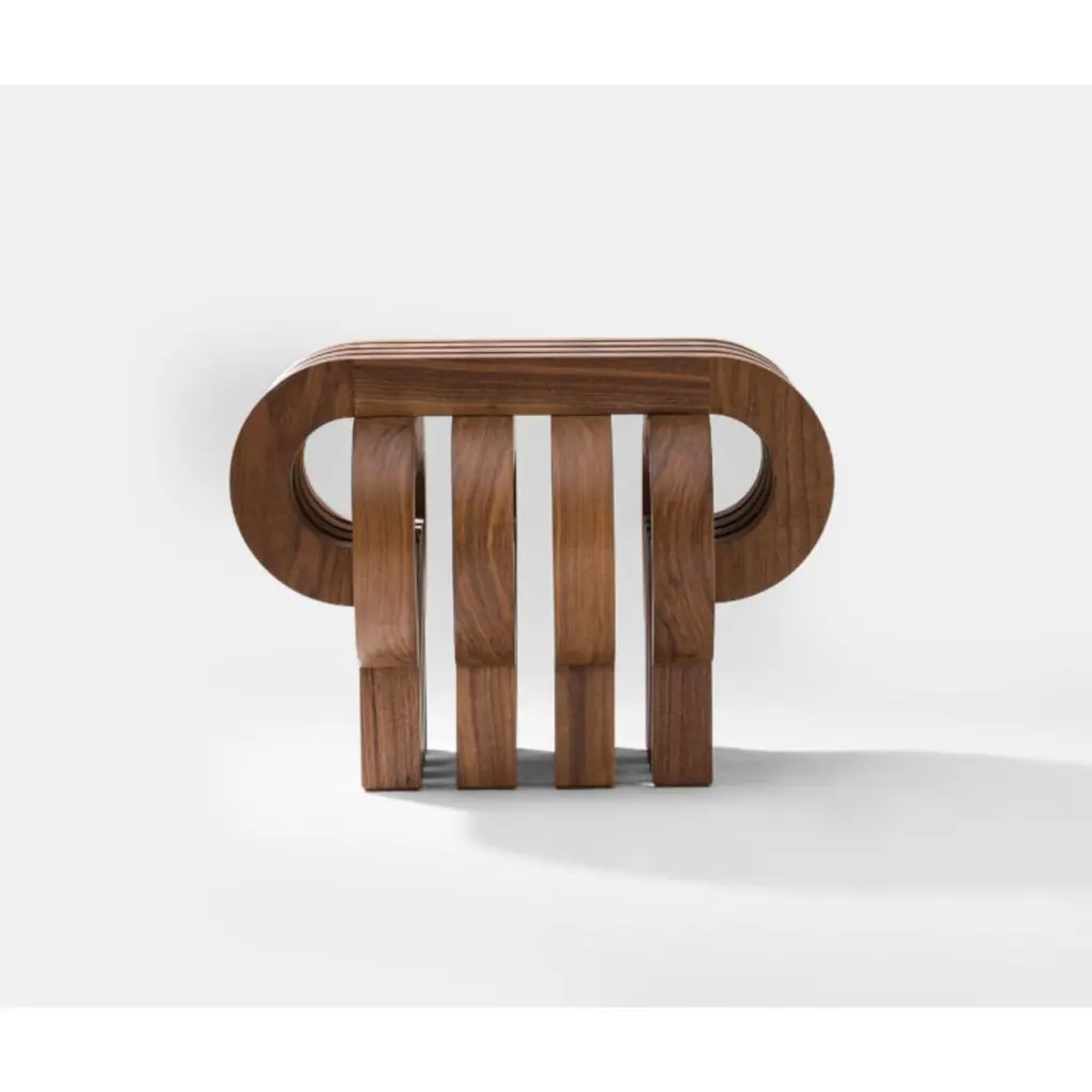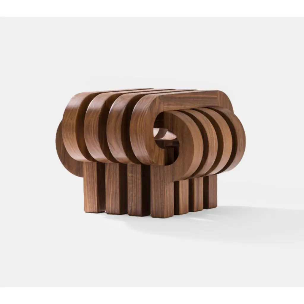 Tamga American Walnut Stool by Tolga SencerDimensions: D 55.5 x W 55.5 x H 40 cm.Materials: American walnut.Available in different wood options (massive american walnut, massive wenge, oak, afromosia or black lacquer with stainless steel details). Please contact us.Tamga Collection is based on a balance of filled and empty spaces composed by the repetition of a linear form in a harmonious rhythm. In this harmonious rhythm, change of dimensions leads to variations of the product. Rotation of this rhythm on a lower layer transforms into a powerful massive effect. Sculpturesque posture of Tamga shows how precise application of basic design principles result in strong, consistent and groundbreaking products. The name “Tamga” comes from the side view resembling the old Turkish tamga symbols.Tolga SencerA turkish interior and product designer, sencer creates furniture collections that ‘feel good’ and reflect his authentic, idiosyncratic aesthetic vocabulary. His process resists the reactionary drive towards instantaneous solutions in modern life, producing designs that take time to reveal themselves. With references to turkish antiquity, he designs linear, sculptural forms that evoke harmony. Combining stark modernity with nature and nostalgia, sencer’s furniture is a unique expression of his personal perspective and is rooted in artisanal production techniques.After graduating from bilkent university with a degree in interior architecture and environmental design, sencer moved to istanbul, where he worked in turkey’s leading architectural firms as an interior designer and project director before founding his own design studio.