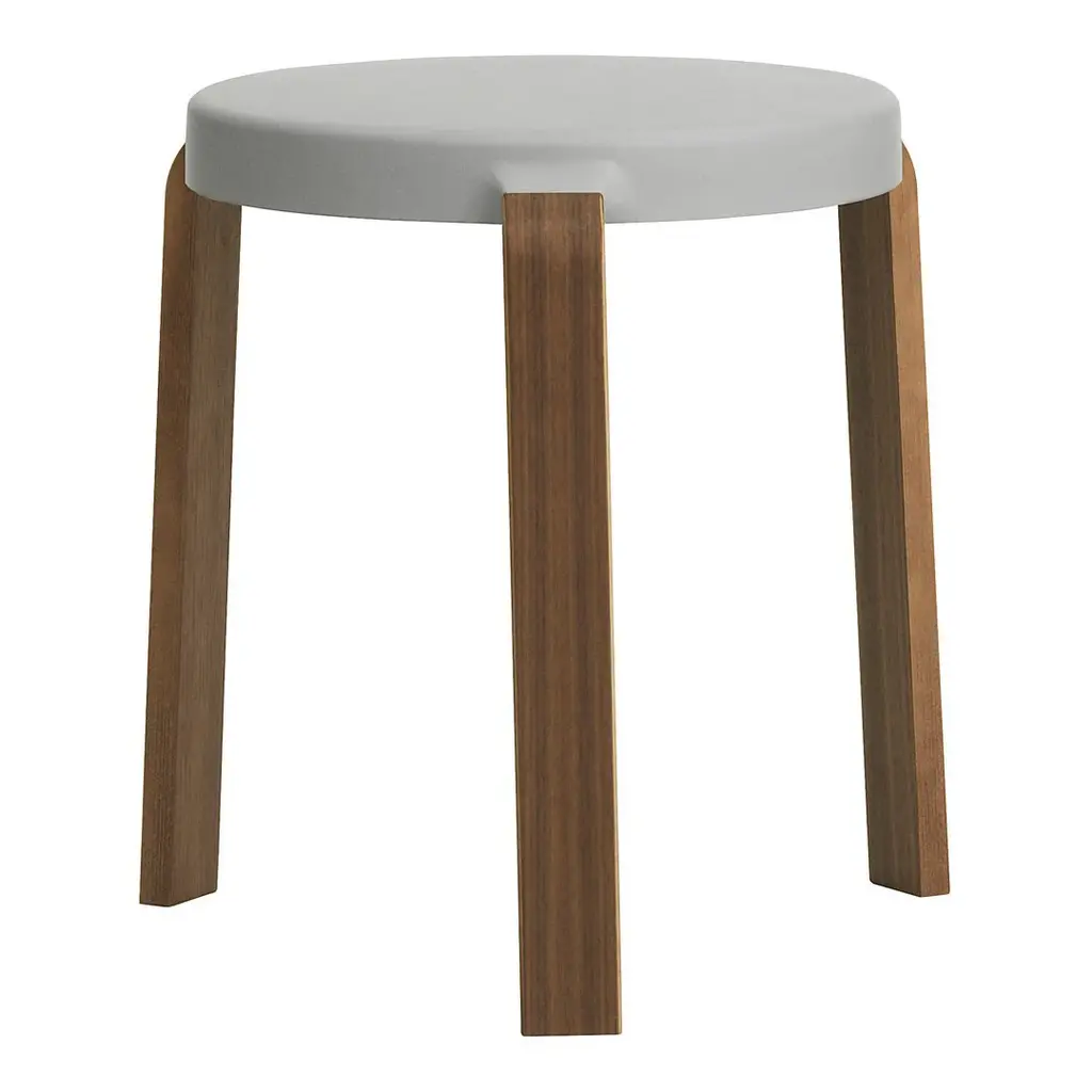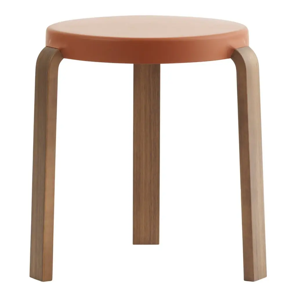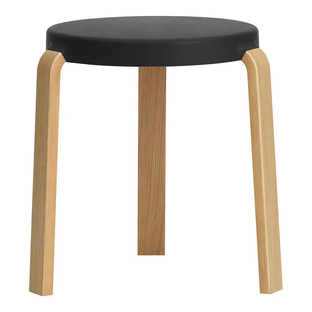 It has three molded legs and a round seat. It can be used as extra seating and is easily stackable. We all know it well; the archetypal three-legged stool. Nearly everyone has had a variation of it in their home at some point in their lives but often its design is taken for granted. Precisely the rethinking of something as simple as a stool was the starting point for Normann Copenhagen's Tap Stool. Slightly hard foam has been used for the seat, which, like rubber, has a flexible, sealed surface. This makes Tap dirt-resistant, durable and easy to clean.The moulded seat ensures good seating comfort and provides the stool with the same welcoming warmth known from upholstered furniture. The three legs have an integrated transition to the seat. This gives Tap the appearance of a unified whole, even when seen from the side.Use it as an extra seat or to rest your feet on when tired.