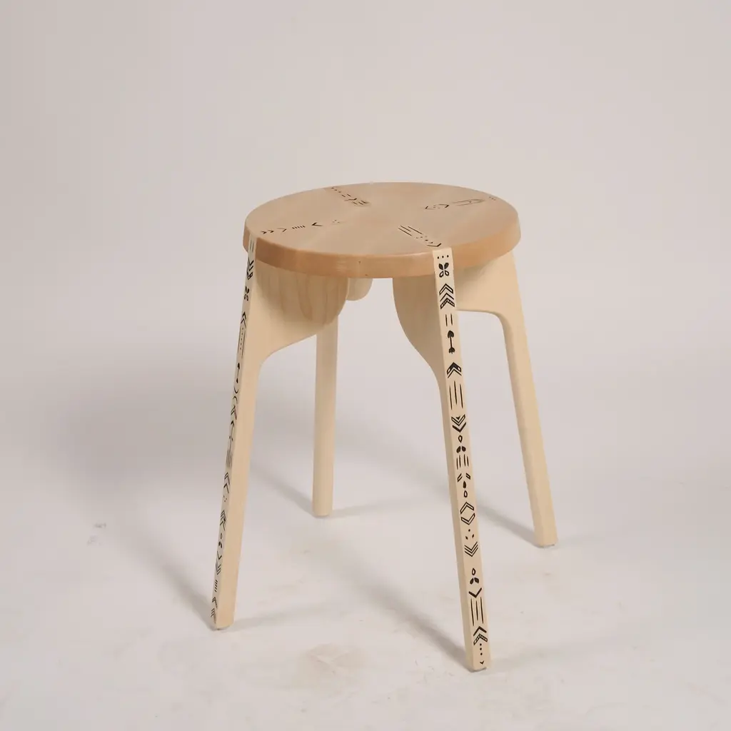 Imaginatively "inking" its solid-wood form by employing traditional Bosnian carving skills, Tattoo Stool offers a playful range of hand-chiseled patterns. Zanat's artisan heritage, cited for cultural preservation by UNESCO, carries through a range of sustainably sourced woods and surface motifs—allover Fullbody and Folk versions or Sleeve and Perla variations that run down the legs. In 3- or 4-legged models, the seat holes add to the stable and stackable stool’s character and allow for easy carrying.