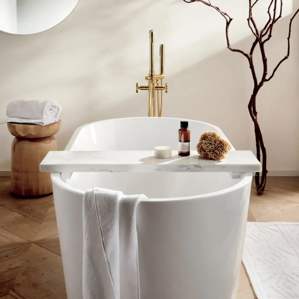 Designed by Mermelada Estudio and made of repurposed Indonesian teak root, round bathroom stool brings sanctuary vibes to the bath. Organic shape spotlights natural holes, knots and graining, making each truly unique. Sits right outside the shower or next to the tub to keep towels and bath essentials in arm's reach. Learn more about Mermelada Estudio on our blog. CB2 exclusive.