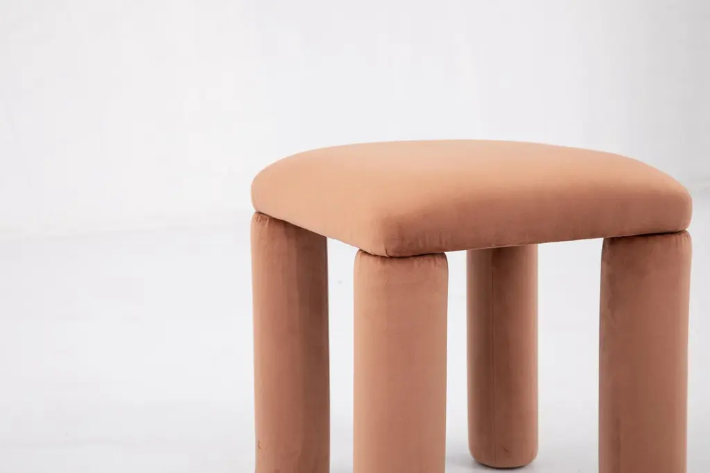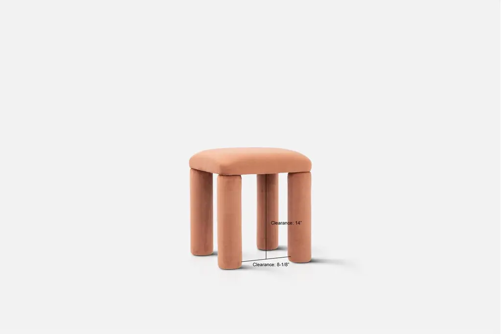 The Temi Stool - easy to move, cute, what more is there to say? The fabric is durable, meant for daily use, and resistant to spills and stains.100% polyester velvet, abrasion and stain resistantSteel frame16.25"W x 16.25"D x 17.25"HSwatches available upon request.