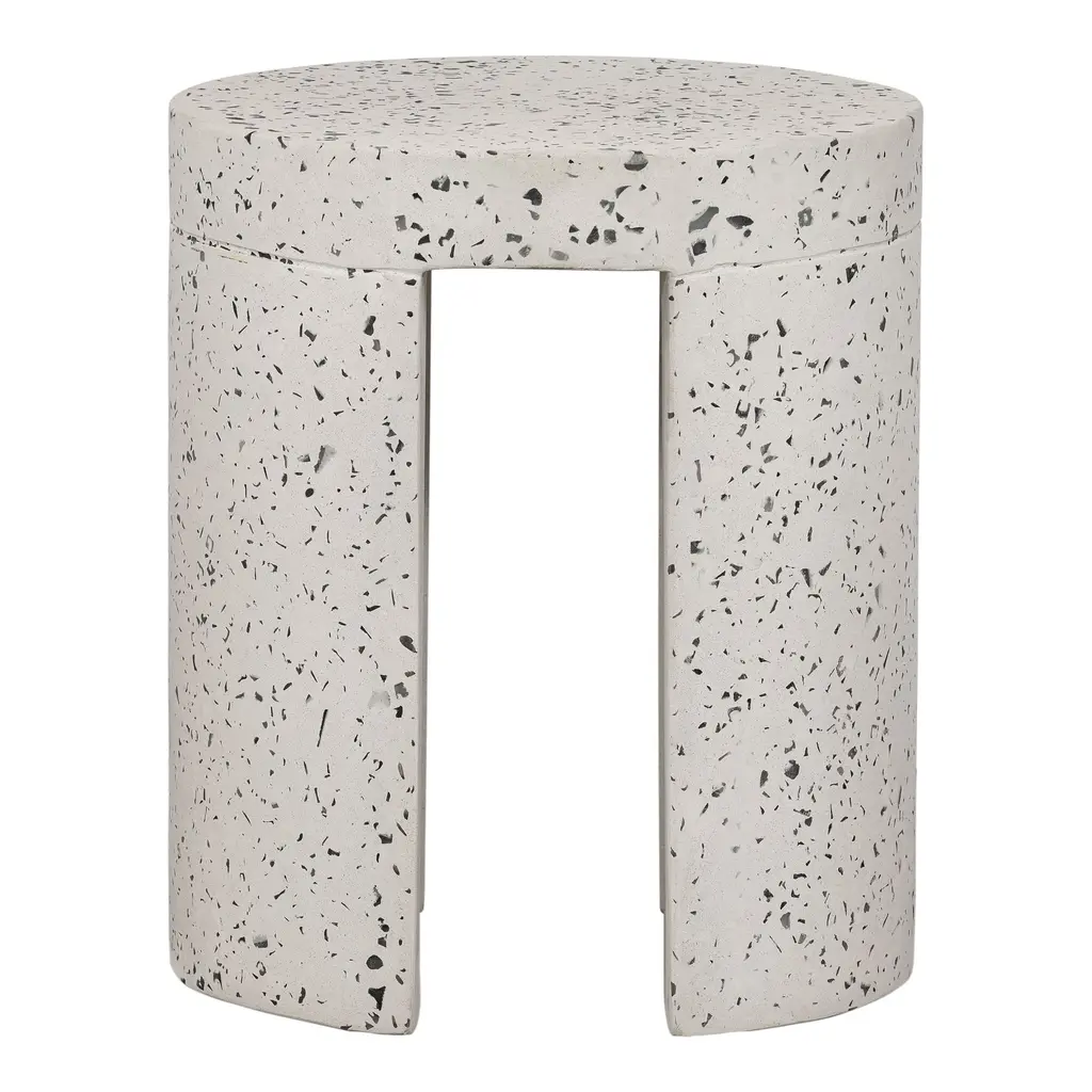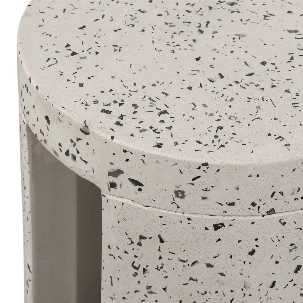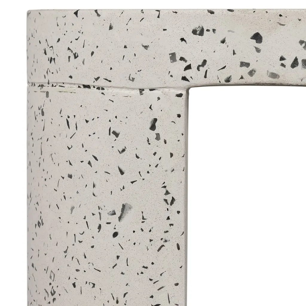 Brings a chic, modern feel to the outdoors. Speckled terrazzo finish pops on a deck or patio. Pair with the matching table for a seamless look. Concrete frame makes it extra durable.