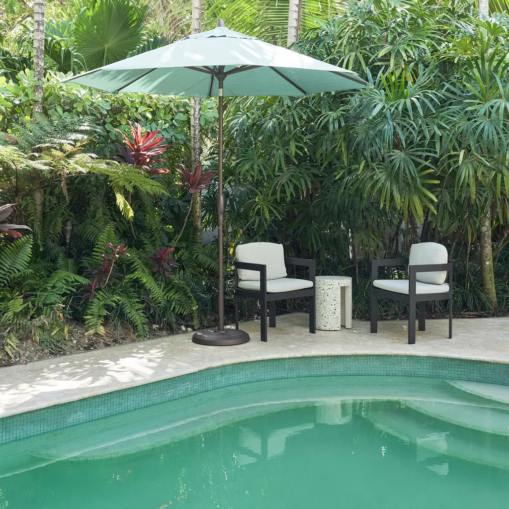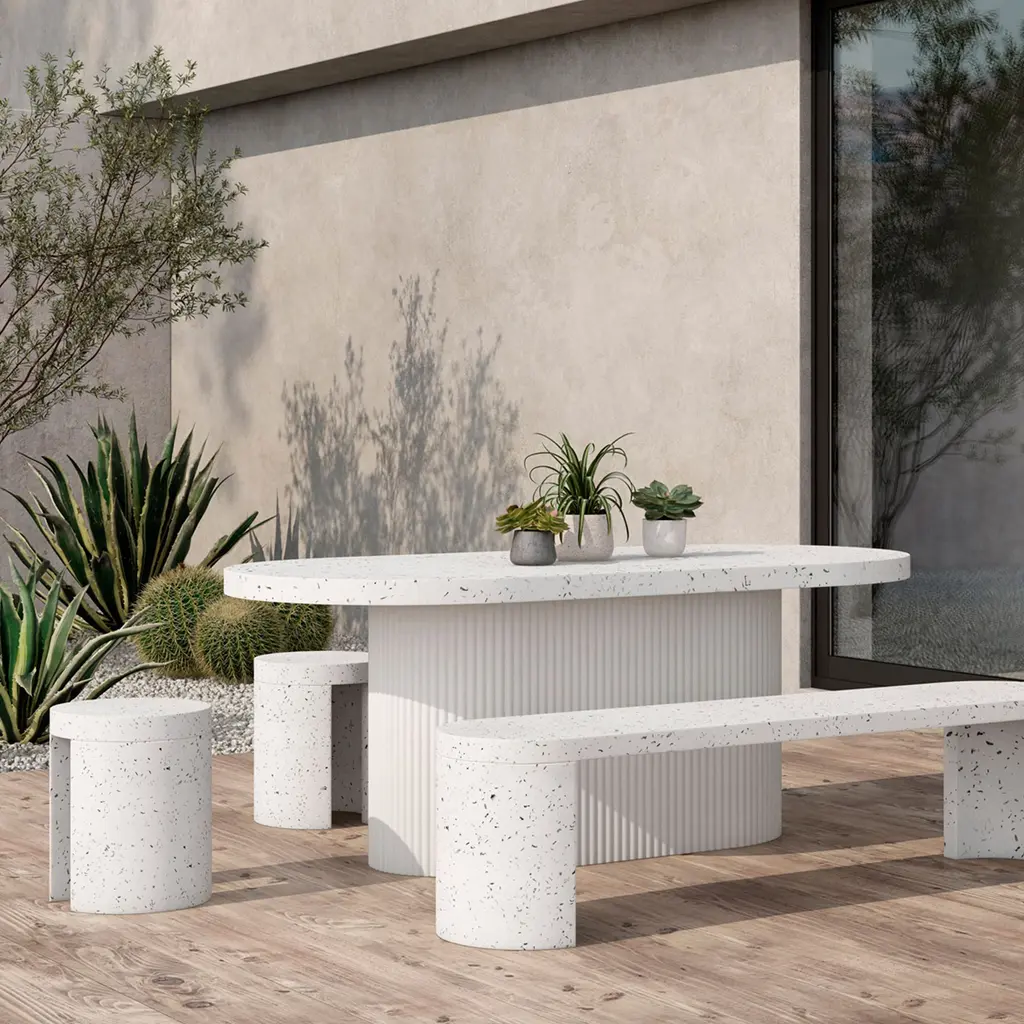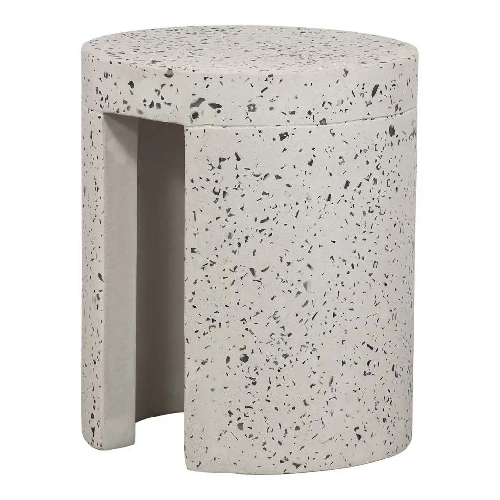 Brings a chic, modern feel to the outdoors. Speckled terrazzo finish pops on a deck or patio. Pair with the matching table for a seamless look. Concrete frame makes it extra durable.