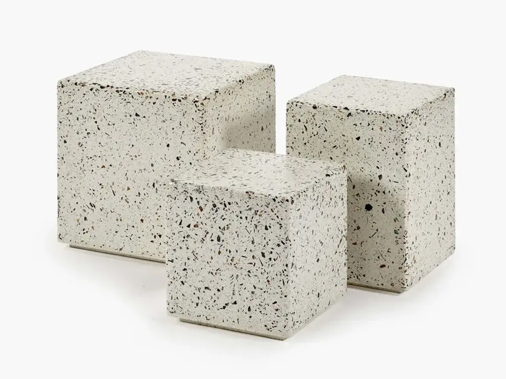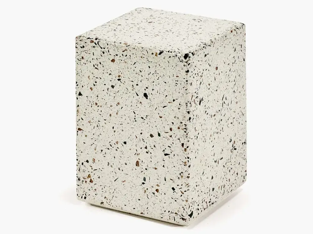 Terrazzo side table Pawn is a square low table and stool made of terrazzo. The collection of side-tables by Marie Michielssen for Serax reveals an idiosyncratic, eclectic ensemble of geometrical figures, materials and colours that unmistakably bear her signature. Cylinders and cuboids that are not only beautiful but are also very handy because of their double function as both a side-table and a stool. Mix and match different tables or let a single item speak for itself; the side-tables of Marie Michielssen for Serax always ‘sit’ comfortably with you.The collection of side tables by Marie Michielssen for Serax reveals an idiosyncratic, eclectic ensemble of geometrical figures, materials and colours that unmistakably bear her signature. Cylinders and cuboids that are not only beautiful but are also very handy because of their double function as both a side table and a stool. Mix and match different tables or let a single item speak for itself; the side tables of Marie Michielssen for Serax always ‘sit’ comfortably with you.