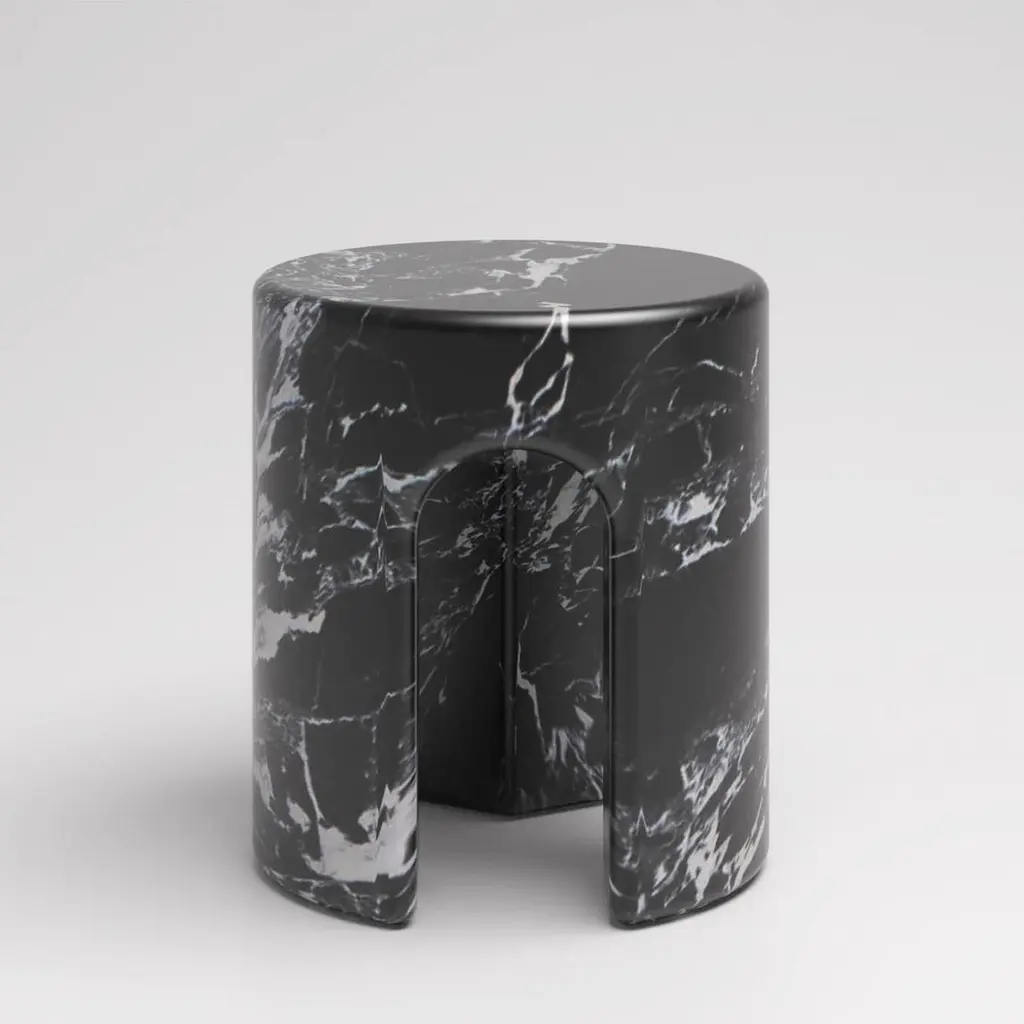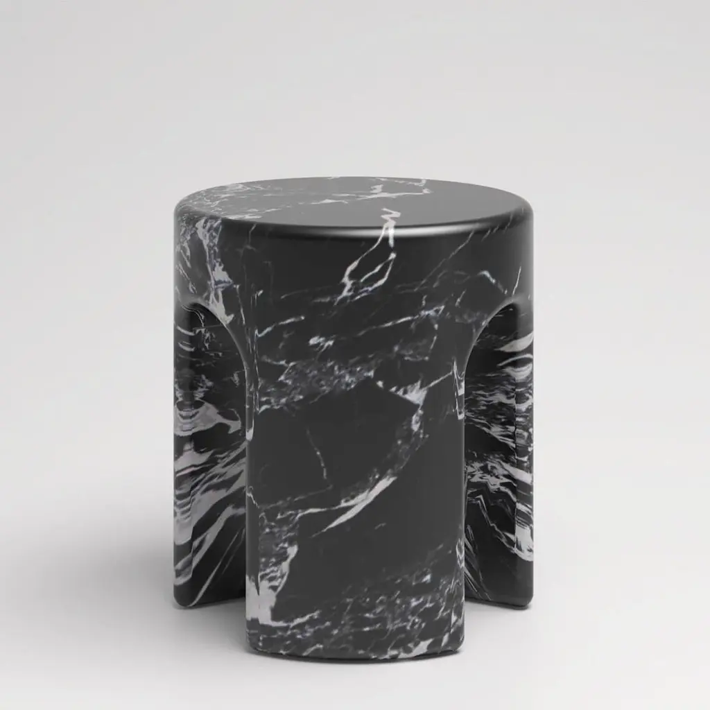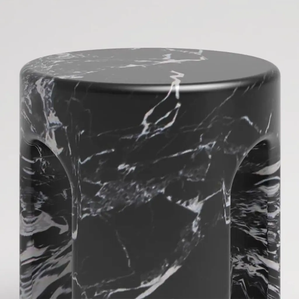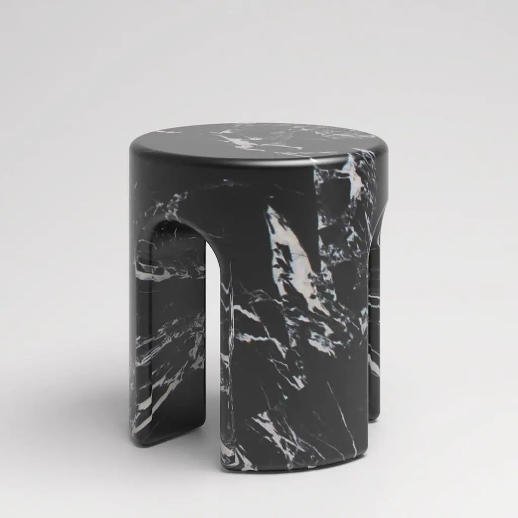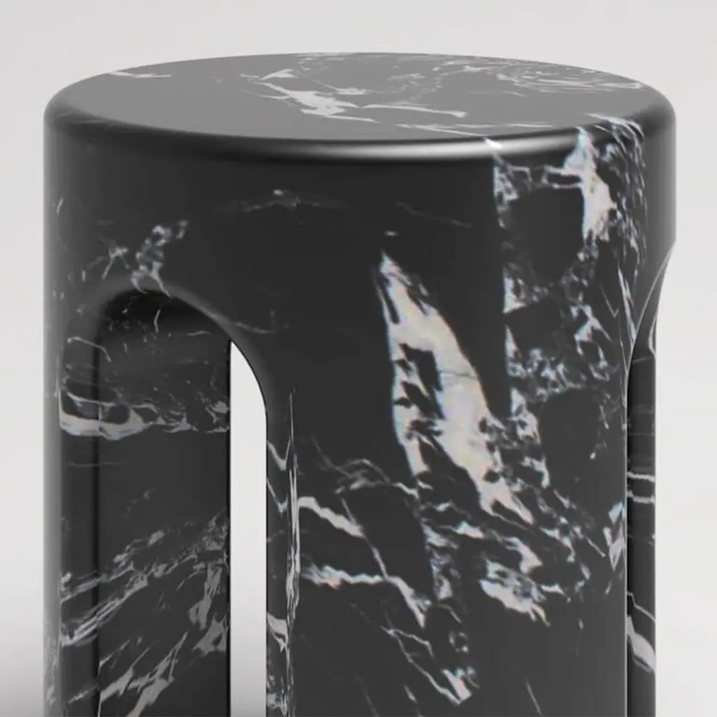 Stool Tertio Back Marble all in carved black marble in polished finish.Also available in ceramic, on request.