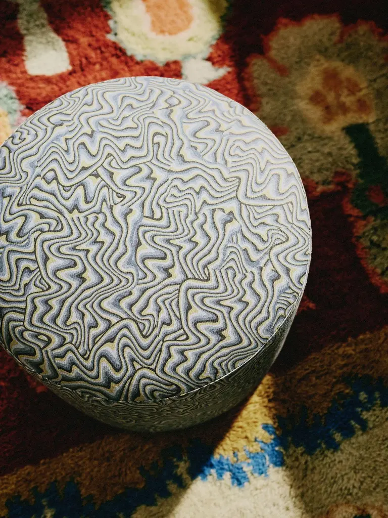 The Pill Stool offers a stylish and comfortable solution for relaxing after a long day or adding extra seating when hosting guests. Its versatile design seamlessly combines functionality with a modern aesthetic, making it a perfect addition to any space. This item is made to order, so please allow 4-6 weeks for production and it is shown here in our Trippy fabric but can be priced in Customers Own Material.Sister by Studio Ashby was founded in 2020 as a part shop, part playground. A playful manifestation of Studio Ashby’s aesthetic. Our collection of future heirlooms, bespoke furniture, vintage treasures, art and accessories, are all curated and designed in-house by Studio Ashby and our founder Sophie Ashby. Each and every piece has a story to tell, drawing on a myriad of references and Sophie’s continual foraging.