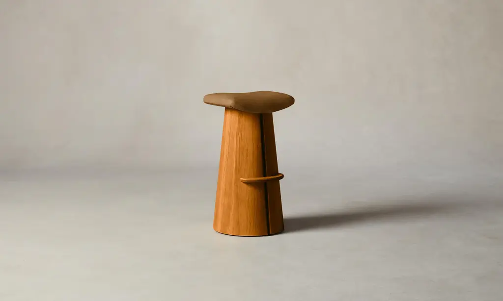 A contemporary interpretation of a classic saddle stool, the Weston has a contoured seat and sculptural base with a slit down the center that welcomes a whisper of light to stream through. Handcrafted at a family-owned workroom in upstate New York.