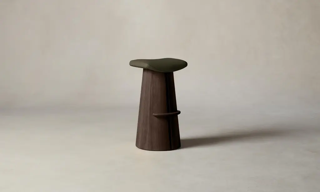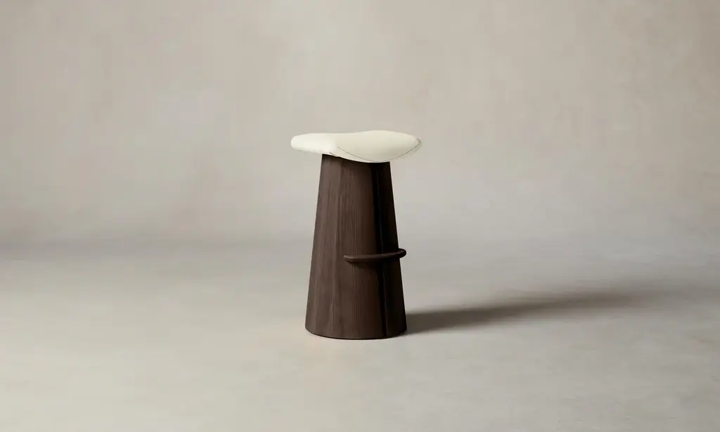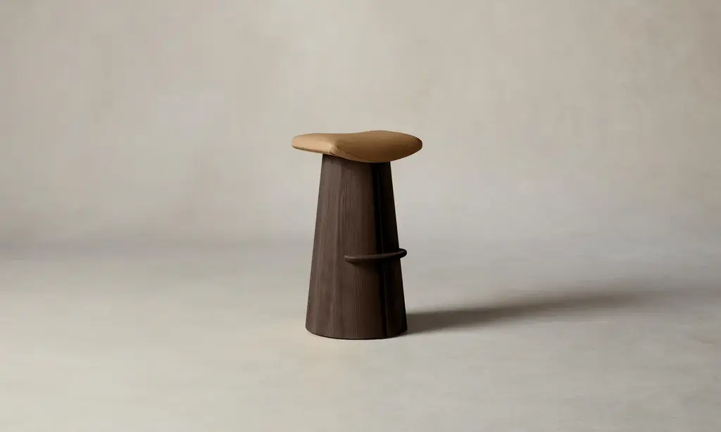 A contemporary interpretation of a classic saddle stool, the Weston has a contoured seat and sculptural base with a slit down the center that welcomes a whisper of light to stream through. Handcrafted at a family-owned workroom in upstate New York.