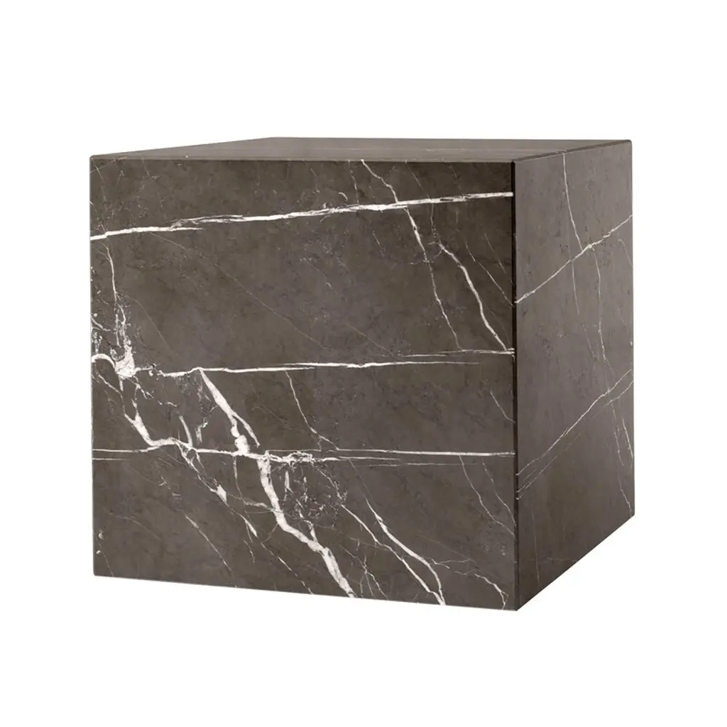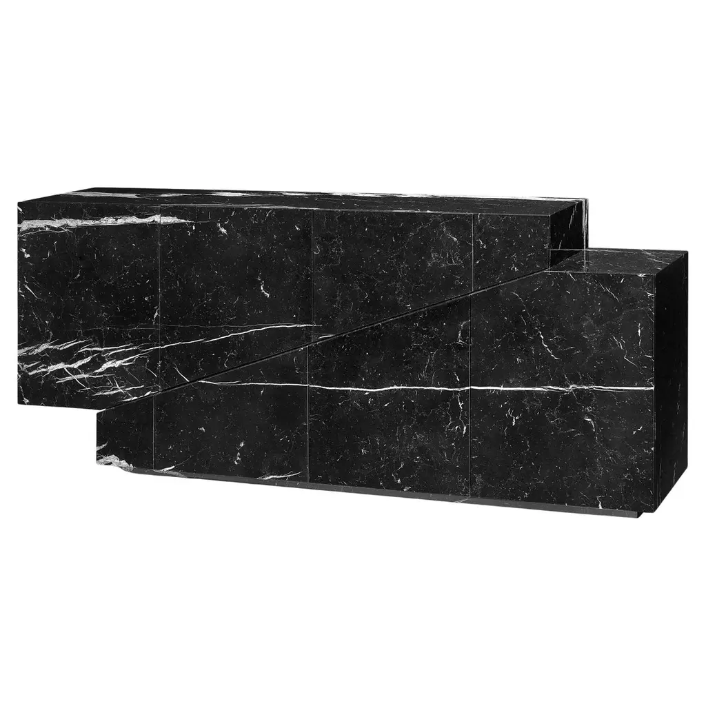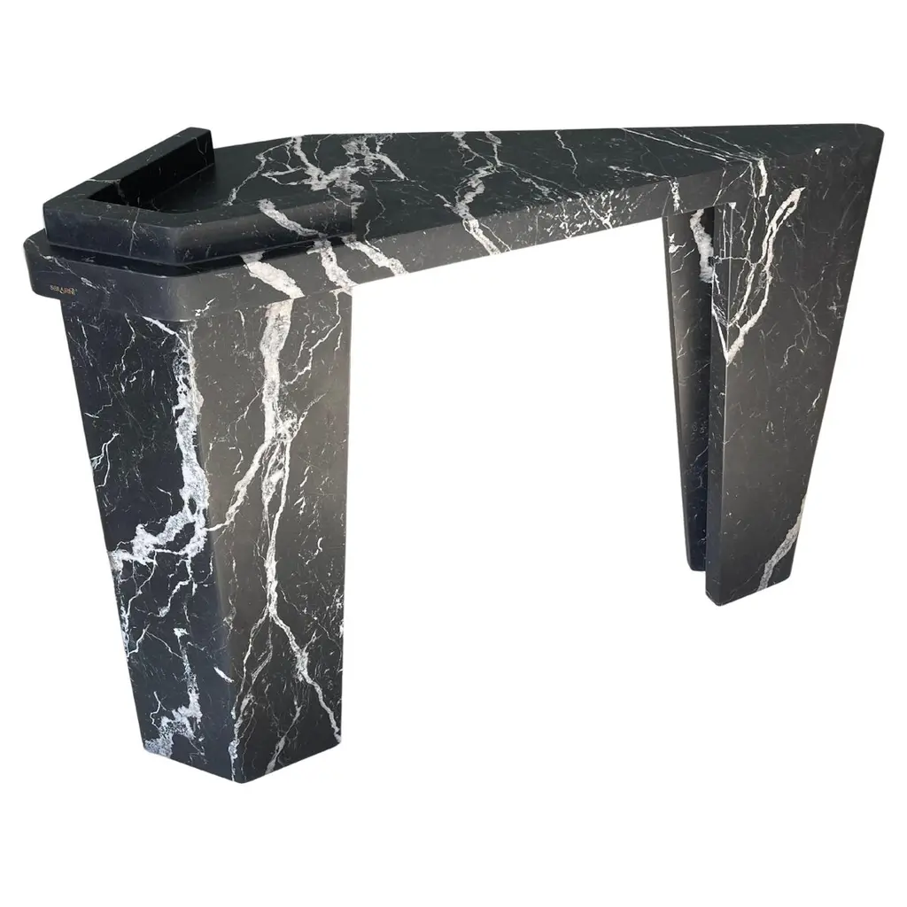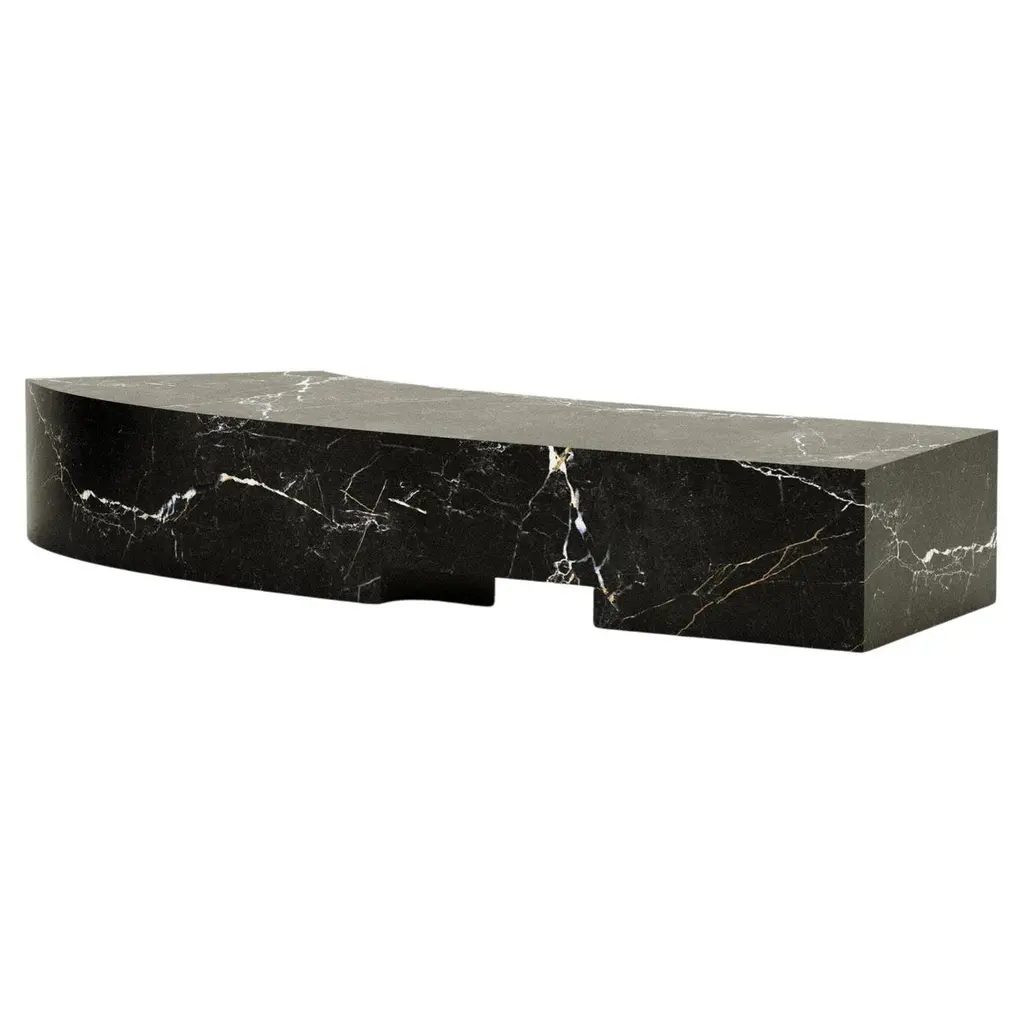 The "Thebes" stool in Nero Marquina marble is a perfect fusion of past and present.This stool embodies the essence of Italian marble craftsmanship and modern machine carving.Designers McGannon Saad wanted to emphasize the intrinsic qualities of marble as a material, to have it interpreted and worked by Pistore Marmi, renowned for its mastery in working natural stone since the 1960s in the Veneto region of Italy.The monolithic form showcases the pure beauty of each stone's metamorphosis, creating poetic textures and stories.With a curved seat for comfort, it draws inspiration from objects of the archaic period, hence the name Thebes.The durability of stone makes it ideal for both indoor and outdoor use, integrating effortlessly into contemporary spaces. It is available in two versions-a low-back chair and a stool-with finishes inRosso Verona, Travertino, Bianco Carrara or Nero Marquina.