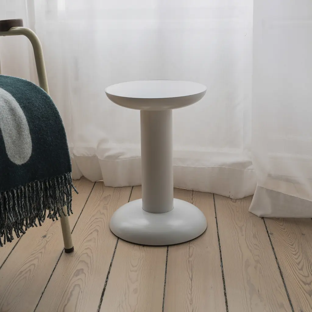A stool is not just a stool when it’s designed by an iconic designer and Memphis Group co-founder. Meet the Thing Stool, created by George Sowden and produced by Danish brand Raawii. Featuring hefty rounded forms reminiscent of an oversized toy or modern sculpture, the stool strikes a bold look in any space. In addition, this design is incredibly versatile. It can be used as seating, as a side table, or as a shelving for plants or decorative objects. Made of recycled aluminum, the Thing Stool is not only eco-friendly, but suitable for indoor and outdoor use, too. Available in neutral or bright colors.