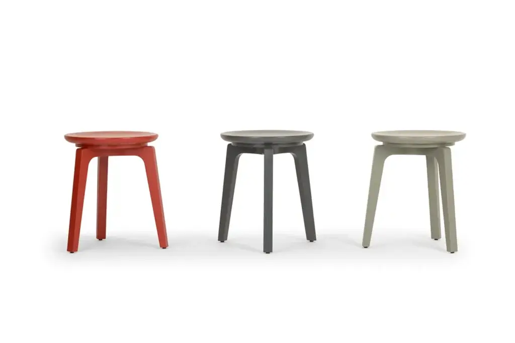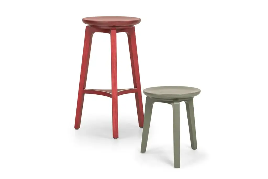 Inspired by the traditional work stools, TOD is available in two different heights.Made of solid wood, it is proposed not only in natural oak or thermocooked wood, but also in a variety of colours with a glossy finish that make it a transversal complement with great flexibility of use in different contexts.Solid wood structure assembled by concealed interlocking fixing system. Seat in carved and shaped solid wood.Metal footrest for the high version.