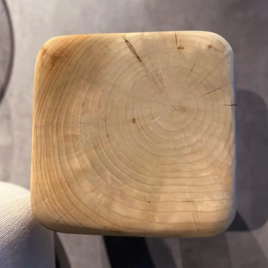 Stool Tooth Cedar with all structure in natural solid cedar wood, treated with natural pine extract. Solid cedar wood include movement, cracks and changes in wood conditions, this is the essential characteristic of natural solid cedar wood due to natural settlement and different environmental conditions.