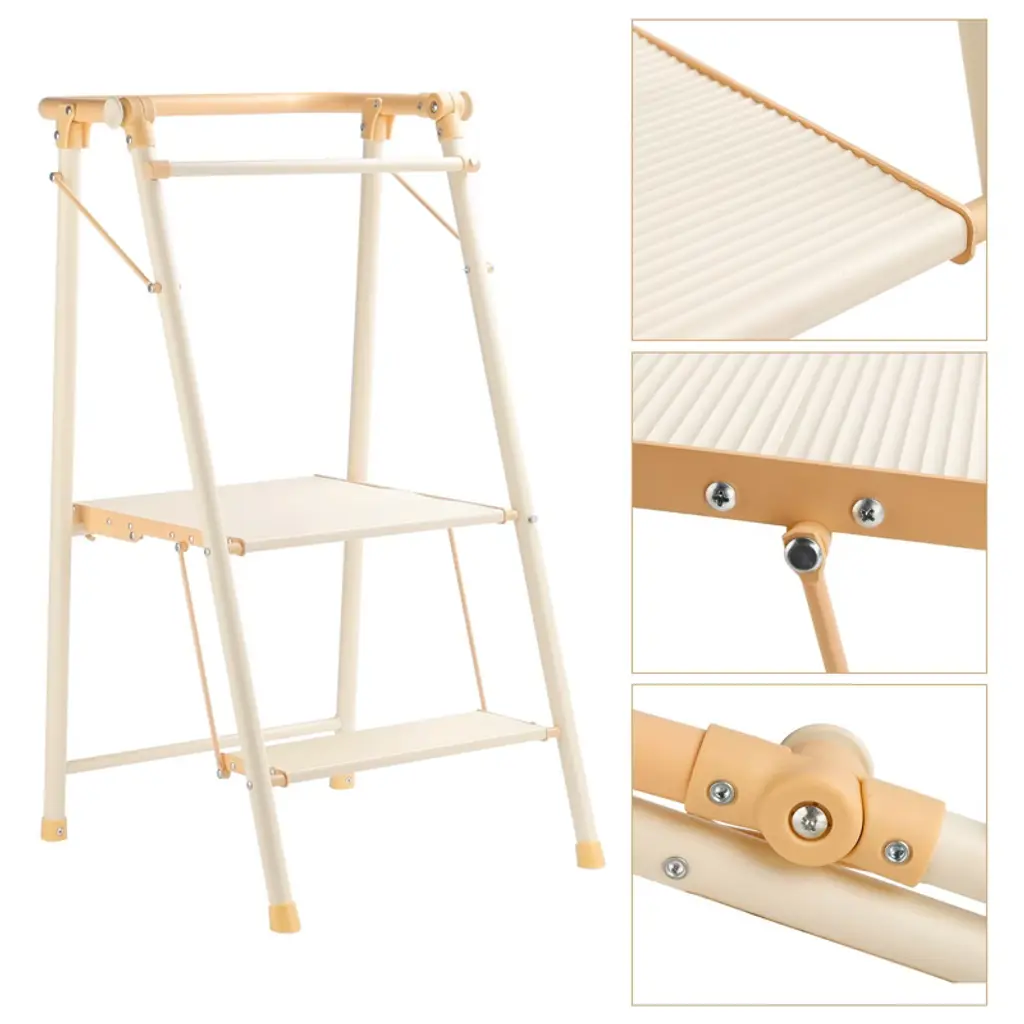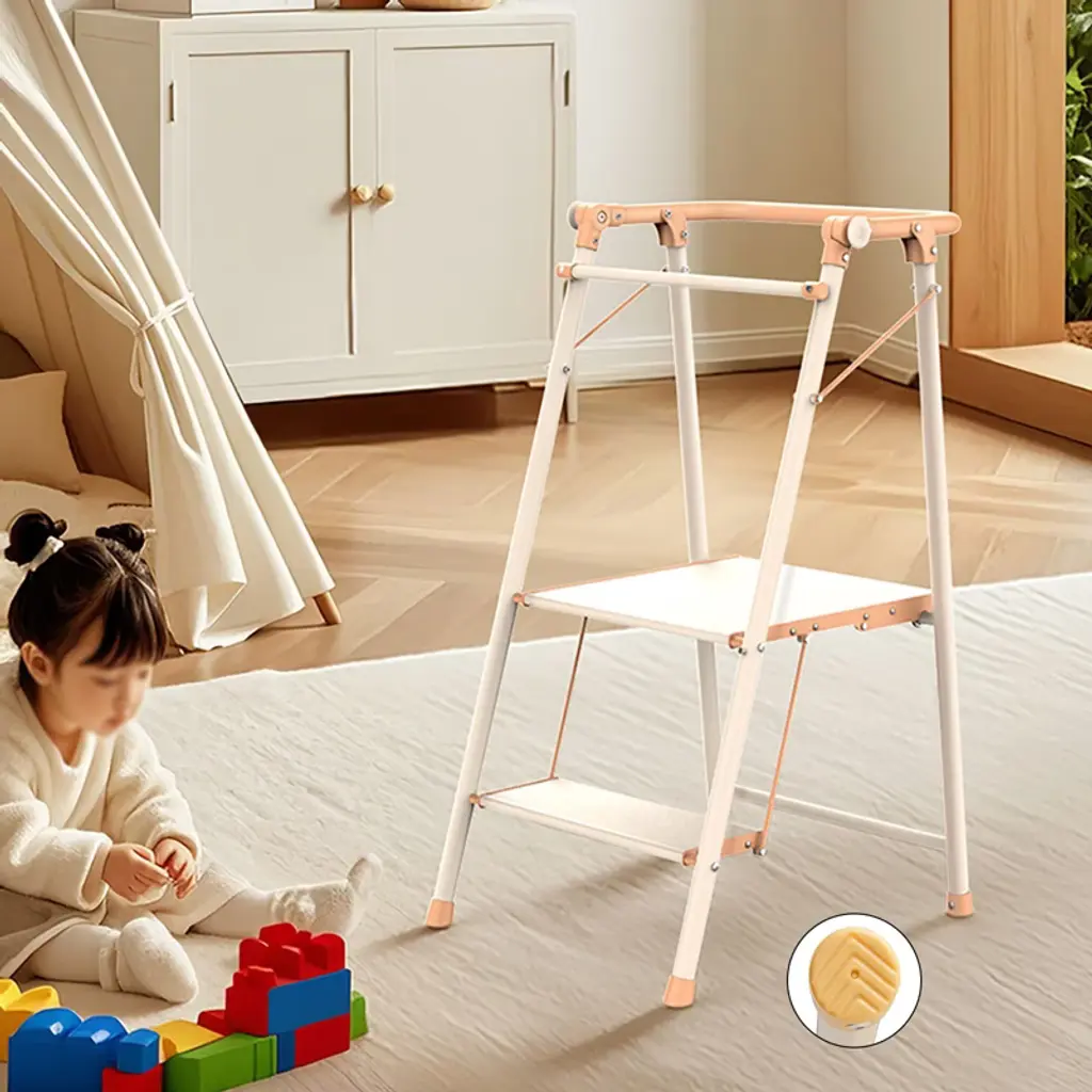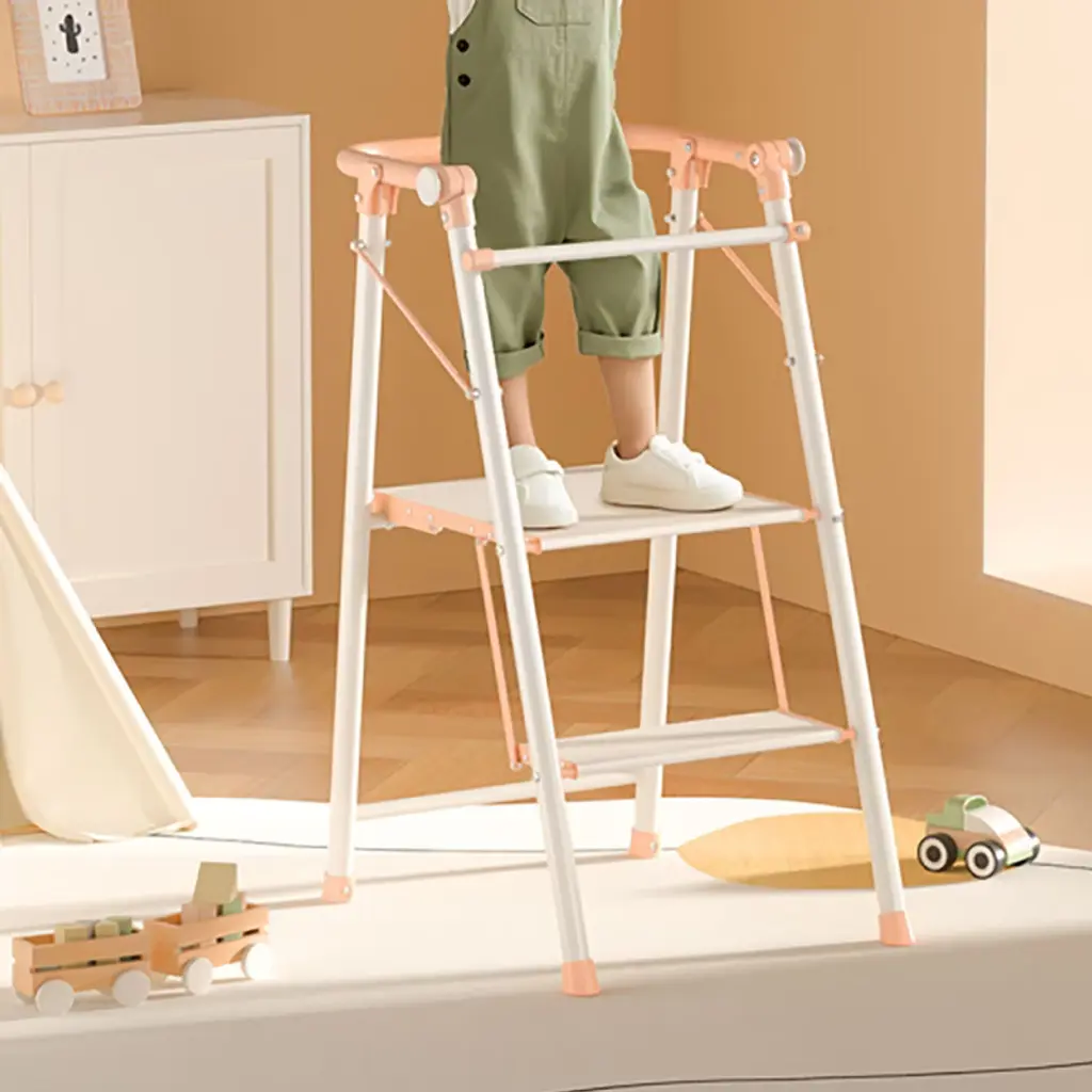 The 2-Step Folding Kitchen Step Stool is a versatile and secure ladder designed for both kids and adults. With its multifunctional design, it allows users to safely reach countertops and high shelves. The stool features a large, slip-resistant platform and a sturdy steel frame, ensuring stability and support for everyday tasks. A rear safety bar offers additional security, making it an ideal choice for households with children, while the easy-folding design allows for compact storage when not in use. This step stool is built to grow with your family, providing a reliable solution for various household needs. Whether you need help reaching the top shelf or involve your child in daily tasks, this stool is a safe and practical addition to any home. Its durable construction and user-friendly features make it a must-have for families seeking both convenience and safety.