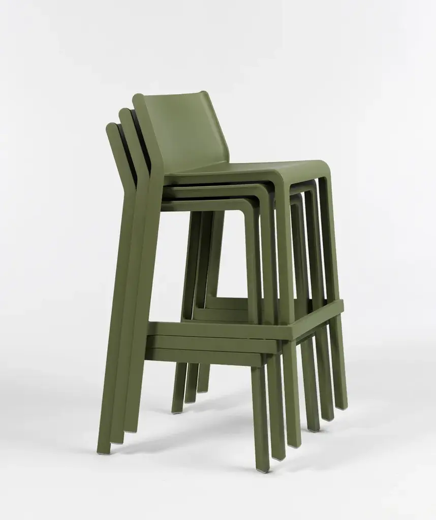 Comfortable and slender, Trill Stool is the ideal stool for both outdoor and indoor use, featuring a minimalist, lightweight and elegant design. Easily stackable and recyclable, Trill Stool is made of UV-treated and mass-coloured fiberglass resin, with a matt finish available in nine colours.Fitted with non-slip feet, TRILL Stool requires no special maintenance and is available in the following dimensions: W. 50 cm, D. 53 cm and H. 96.5 cm, and seat H. 76 cm.