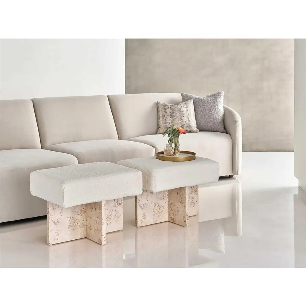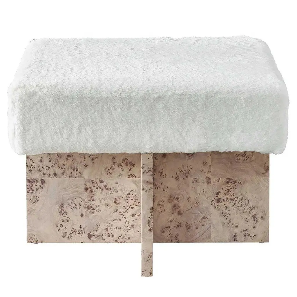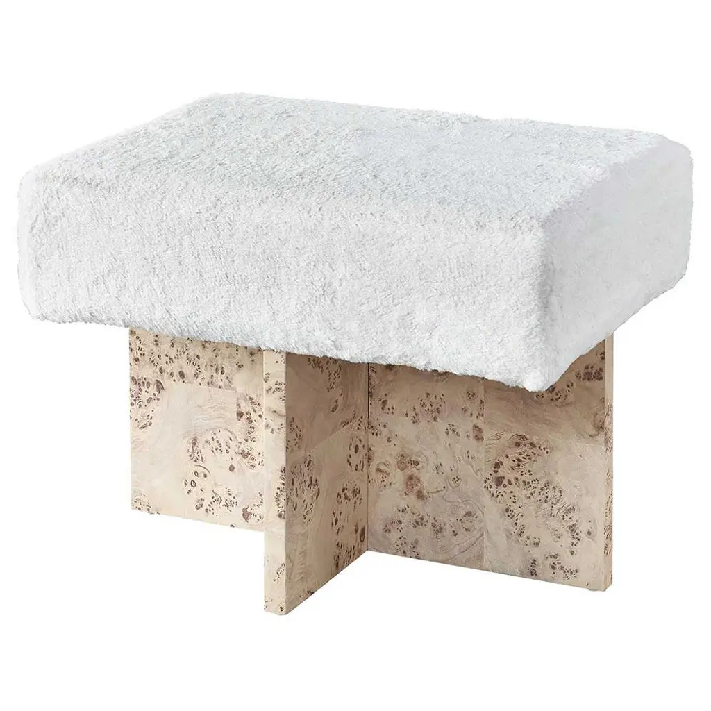 Tristan Modern Classic White Upholstered Beige Burl Wood Rectangular Stool