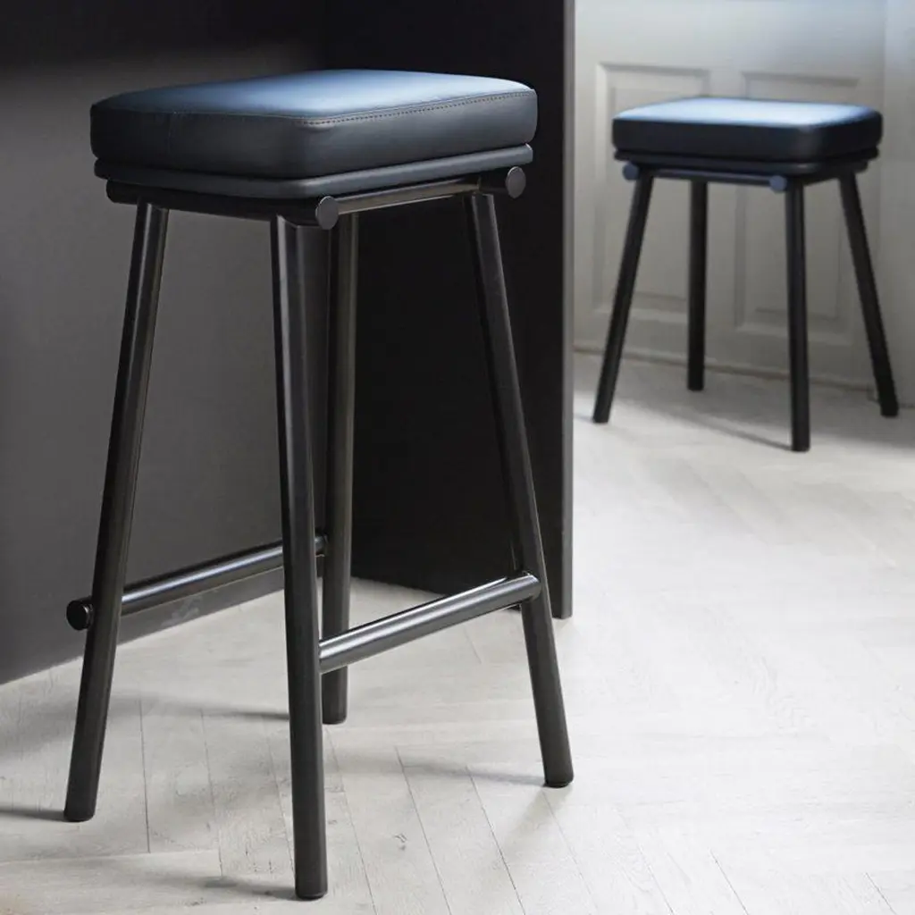 Tubby Tube Stool With Black Frame & Black Leather Seat By Faye Toogood