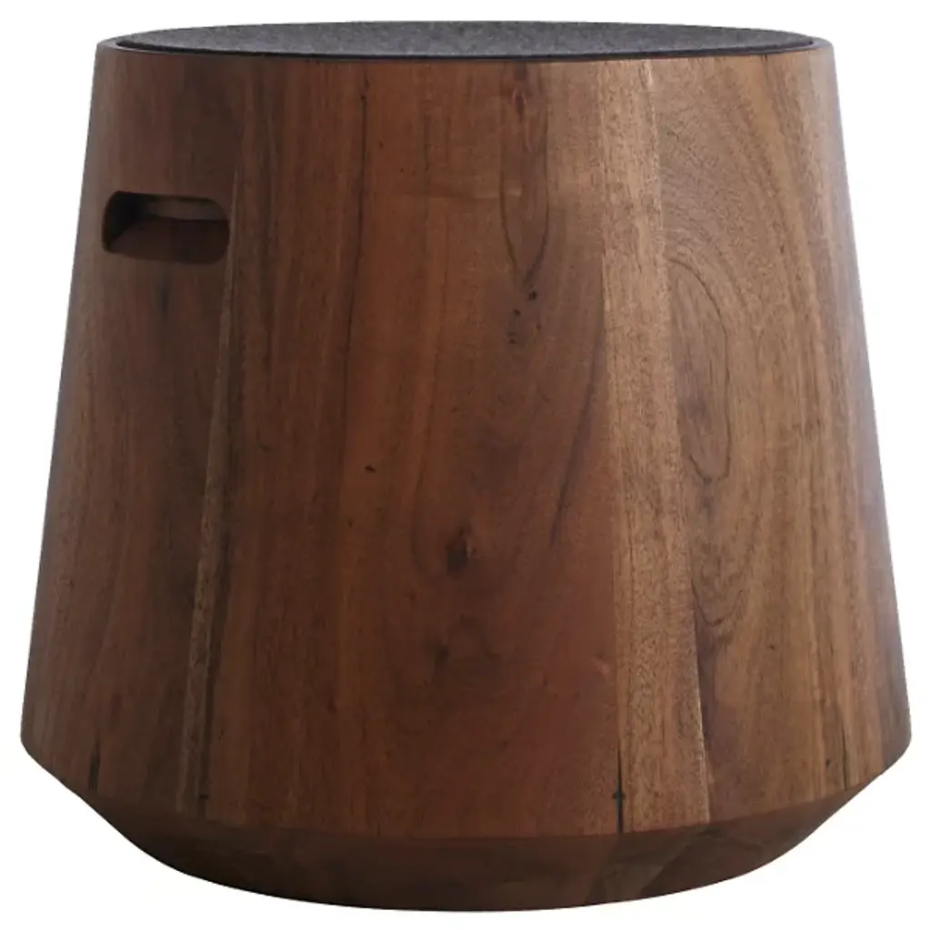 Solid Acacia wood topped with the thick cut felt top of your choice in five colors (also sold separately) to suit your decor or mood. Cut out handles invite easy relocation for use as spontaneous seating, side tables or an ottoman.The Turn Stool is made from solid wood. This means that it may react dynamically to its environment and swell and crack with changes in humidity and temperature.