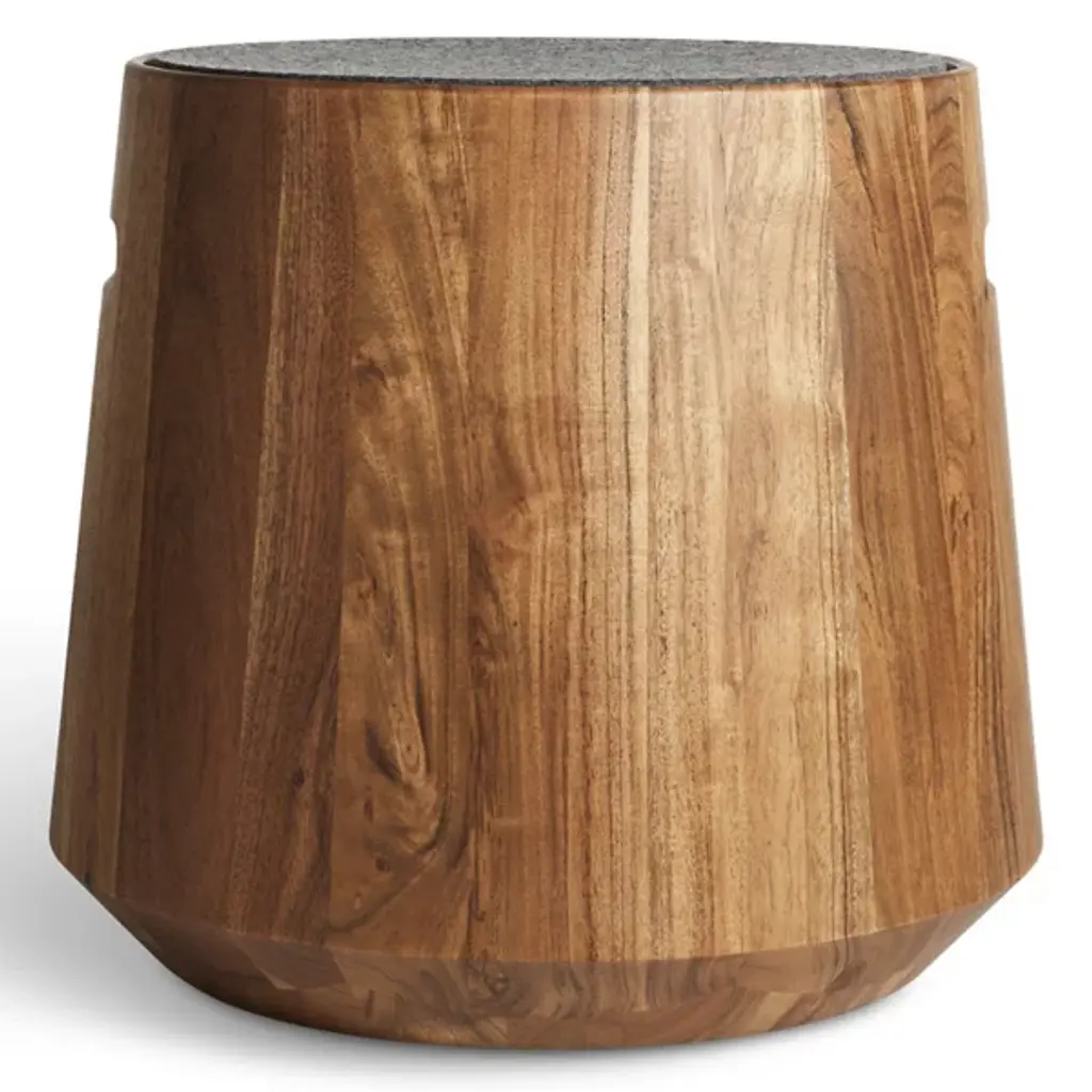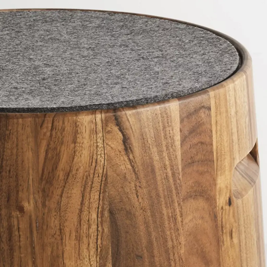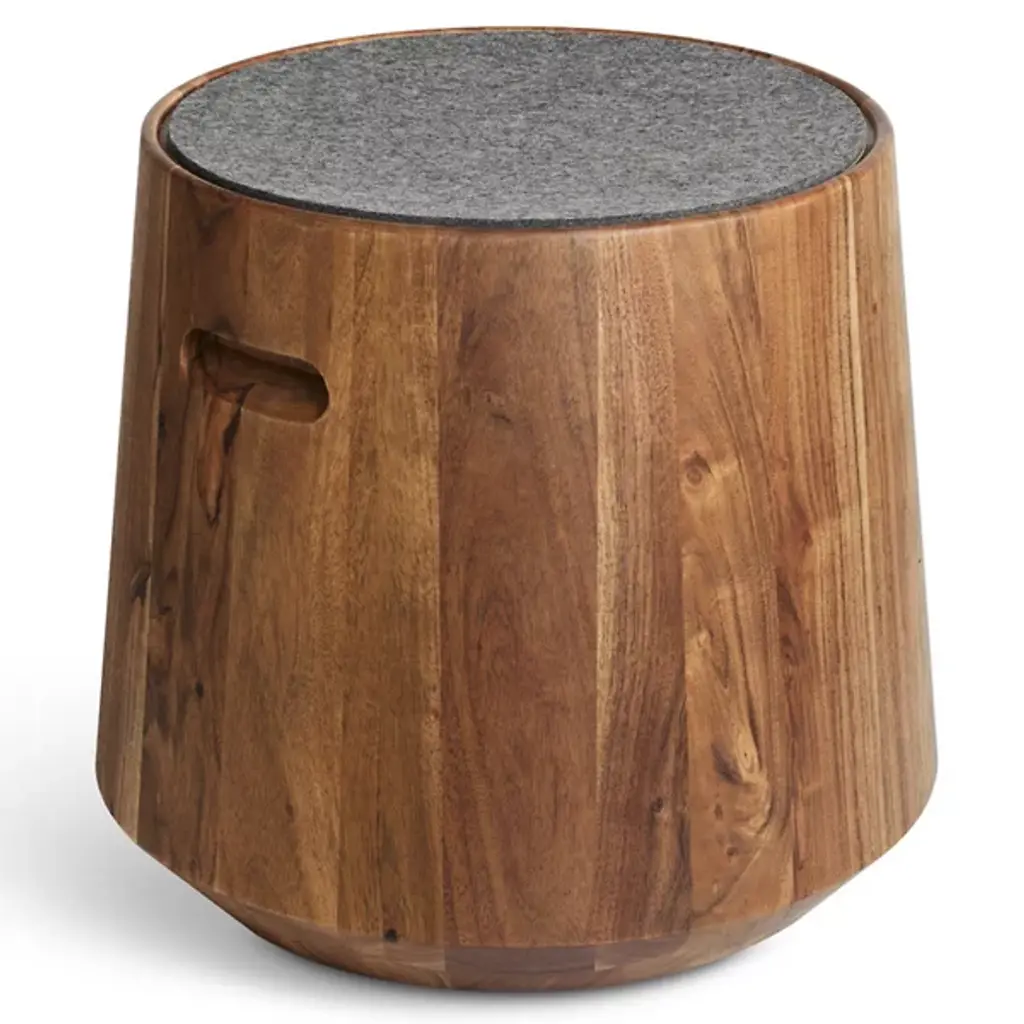 The Turn Stool by Blu Dot is a smooth, solid little piece made out of a single piece of acacia wood. It has cut-out handles for easy portability as extra seating, a side table or ottoman. For comfort as well as fashion, the stool comes with a wool felt top available in a range of colors.