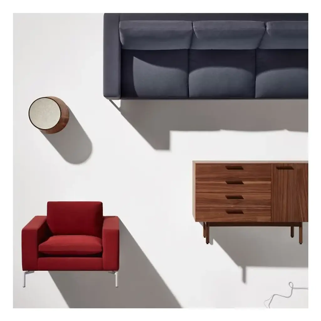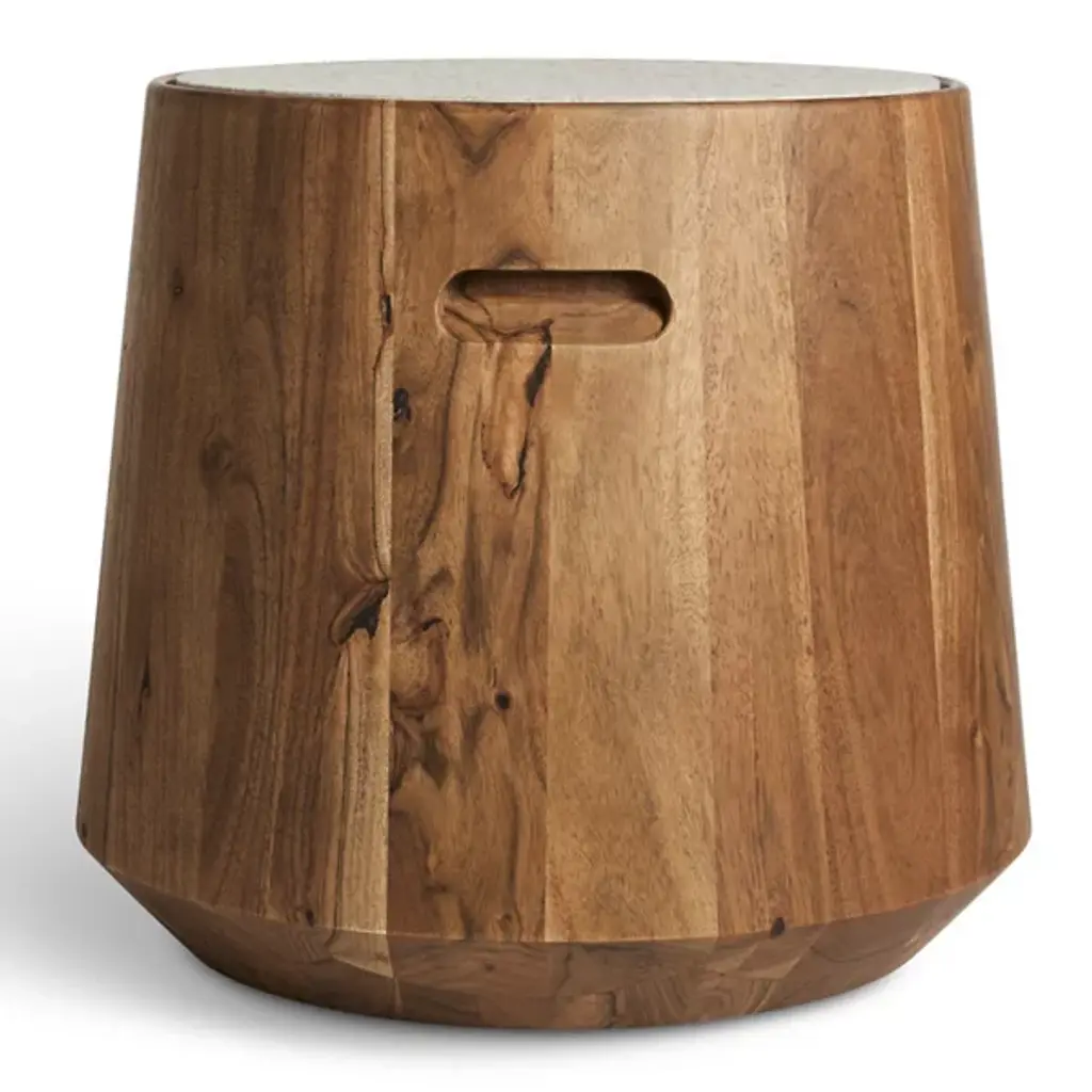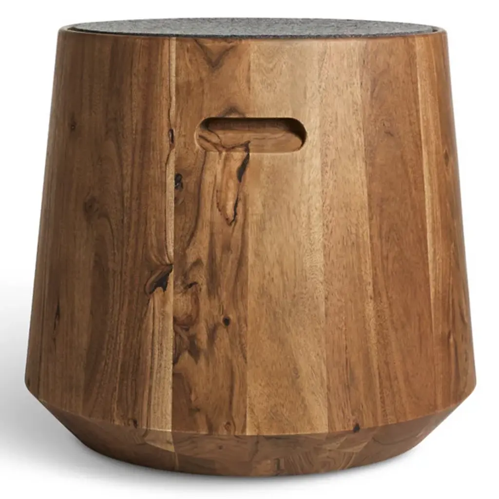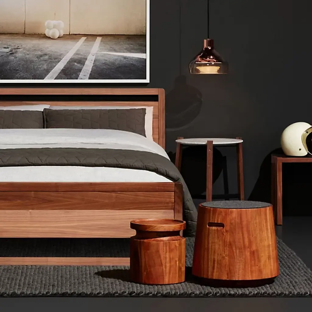 The Turn Stool by Blu Dot is a smooth, solid little piece made out of a single piece of acacia wood. It has cut-out handles for easy portability as extra seating, a side table or ottoman. For comfort as well as fashion, the stool comes with a wool felt top available in a range of colors.