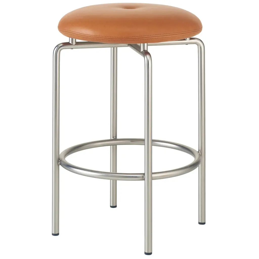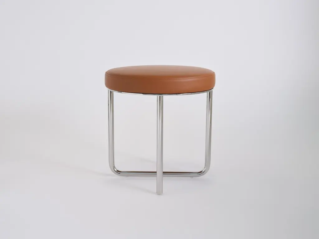 Turnabout Low Stool By Phase Design, Polished Chrome & Leather