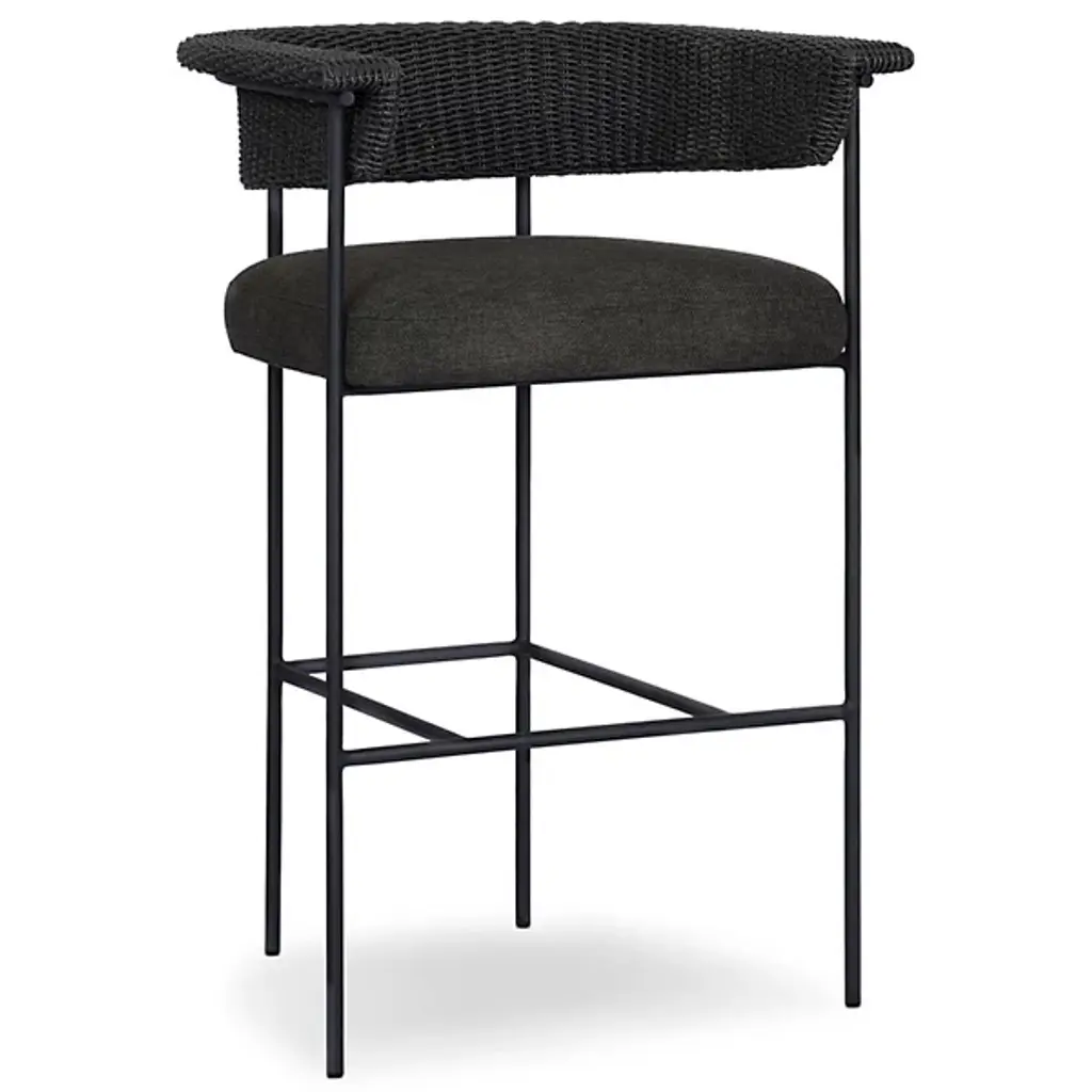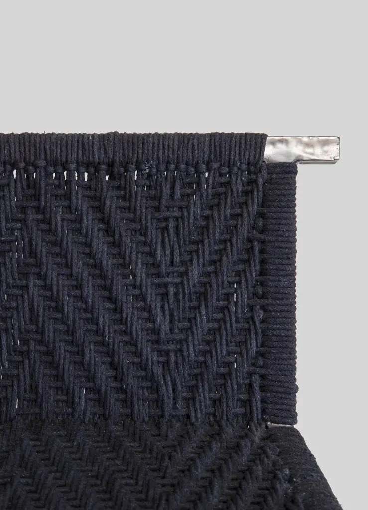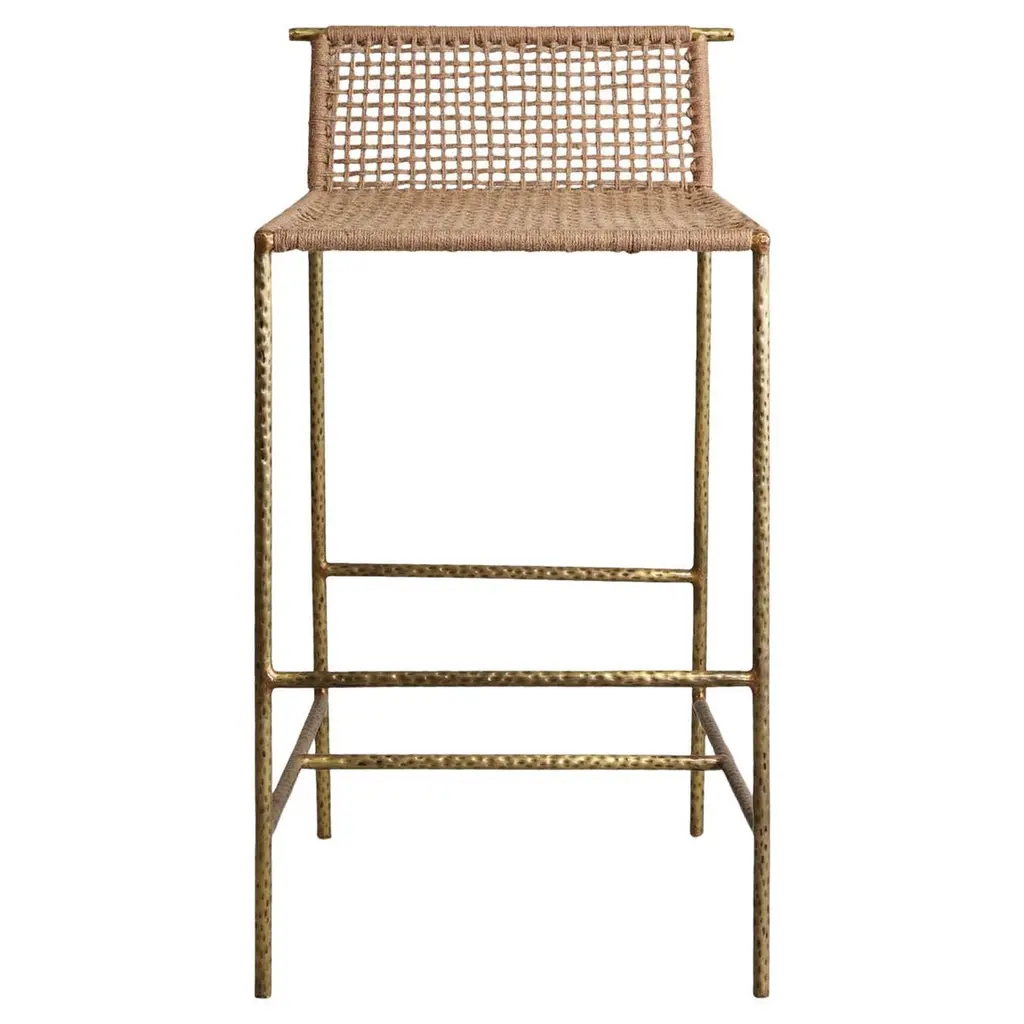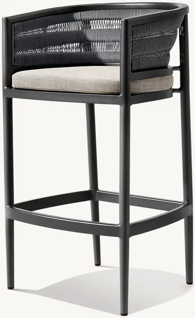 Twist & Knot Black Stool Tall in Rope with Brass Legs, Viya by Vikram GoyalImmersed in the heritage of India's ancient artistry, the humble rope transports us to the heart of craftsmanship. Drawing inspiration from the ubiquitous Charpoy, a traditional Indian cot, this collection features furniture intricately intertwined using traditional knotting techniques passed down through generations. The use of organic fibres like jute and coir echoes the sustainability deeply ingrained in India's cultural ethos, and its delicate strands, fortified through interlacing, remind us that we are all stronger together.Stool in brass and cotton rope. Handmade in India.Product DetailsMaterial: Brass, MS & CottonSize: 21"L x 17"W x 33"H 53.3 L x 43.2 W x 83.8 H cmSeat Height: 27" H 68.6 H cmWeight: 7.5 kg 16.5 lbsNumber of Pieces: 1 StoolSKU: VSL106This product has been handcrafted by local artisans. As such, slight variations are a testament to the unique character of a piece made by hand.