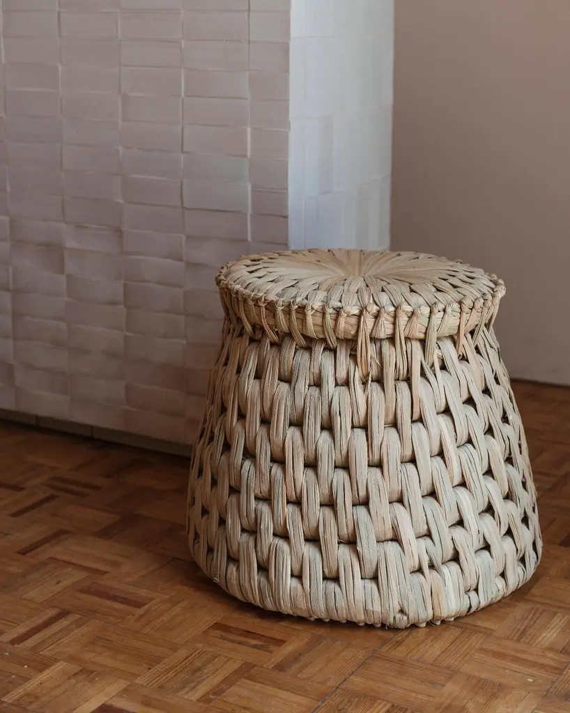 txt.13 Stool by Txt.UreDimensions: Ø 56 x H 50 cm.Materials: Tulle natural fiber with natural finish.For indoor and outdoor use (under covered spaces). Please contact us.Txt. ure was the first design project to reintroduce the Mexican weaving style of the knotted tule technique. Once in danger of disappearing, the txt. 01 tabouret or in Nahuatl the tolli-icpalli knotting method, now gives structure to signature works from the txt. ure Tule Collection, developed with master artisans to achieve durability and contemporary scale. Drawing on more than two years of research and development, the Tule Collection encourage the wider awareness of Mexican craft techniques in the current design conversation. All txt. ure pieces are crafted by weavers and apprentices under the mastery of our partner, artisan Don Nacho Morales in the State of Mexico.Txt. ure is a collaborative design project highlighting the unique functional, historical, and aesthetic qualities of Mexican folk furniture and design. At txt. ure, we promote history as a living endeavor, by encouraging experimentation and innovation among Mexican designers, while also preserving regional techniques and materials specific to Mexico. txt. ure continues to develop, listen, and refine a social interaction methodology with the artisans and communities with whom we collaborate. For txt. ure, to be a design practice is to approach design itself as a vehicle for social transformation. txt. ure was founded in 2015 by Regina Pozo, a curator and former director of Archivo Diseño y Arquitectura.