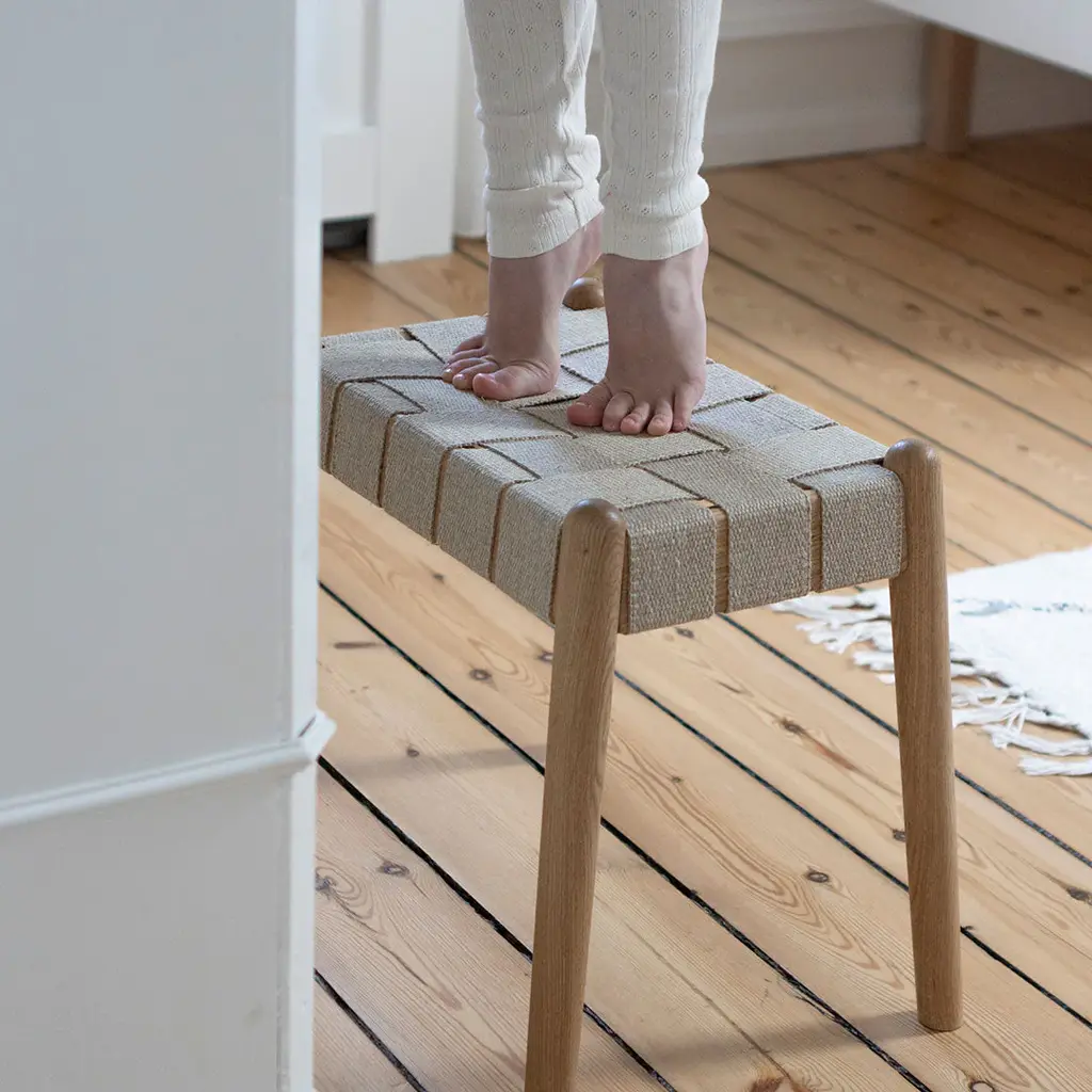 The UMI series is designed by the Norwegian designer Jennifer Cena. The series combines elegance with authenticity and sustainability, which appeals to modern aesthetics and values. UMI means sea in Japanese, which has strong references to the Nordic and simple design. The natural beauty of the oak and the structure of the natural linen belt fit into both classic, minimalist and maximalist interior themes. The artisanal care and attention put into shaping and working the oak results in unique details and a handcrafted quality and finish that differs from mass-produced furniture. The UMI series in solid oak consists of 6 pieces of seating furniture - including stools, benches and a daybed, and there is guaranteed to be one that fits perfectly into your personal interior design. You can use the UMI series in the entrance hall, in the bedroom, in the dressing room, along the dining table, in the bathroom or in other places where an extra seat is needed or where you need a beautiful detail. The unique daybed can be used both as a bench or for overnight guests. If you add a few large, attractive cushions, it can also be transformed into a nice little sofa or a sunbed on the covered terrace or in an orangery.