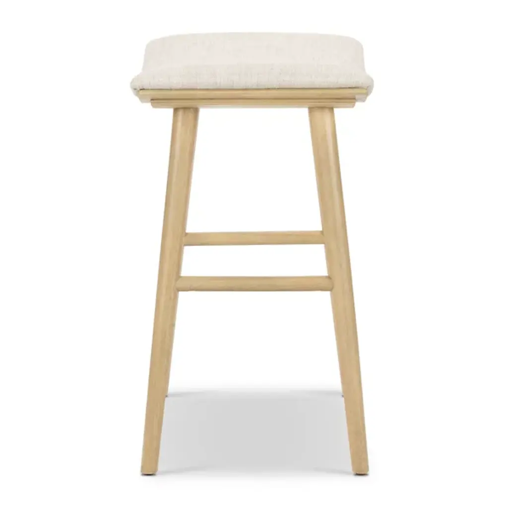 Union Saddle Stool by Four Hands offers understated elegance. Its sleek design effortlessly captures attention, combining slim styling with warm wood framing for both visual impact and reliable support. The saddle-style seat not only enhances comfort but also adds a touch of charm. This stool is an ideal choice for spaces seeking a harmonious blend of style and functionality, bringing timeless appeal to any setting.