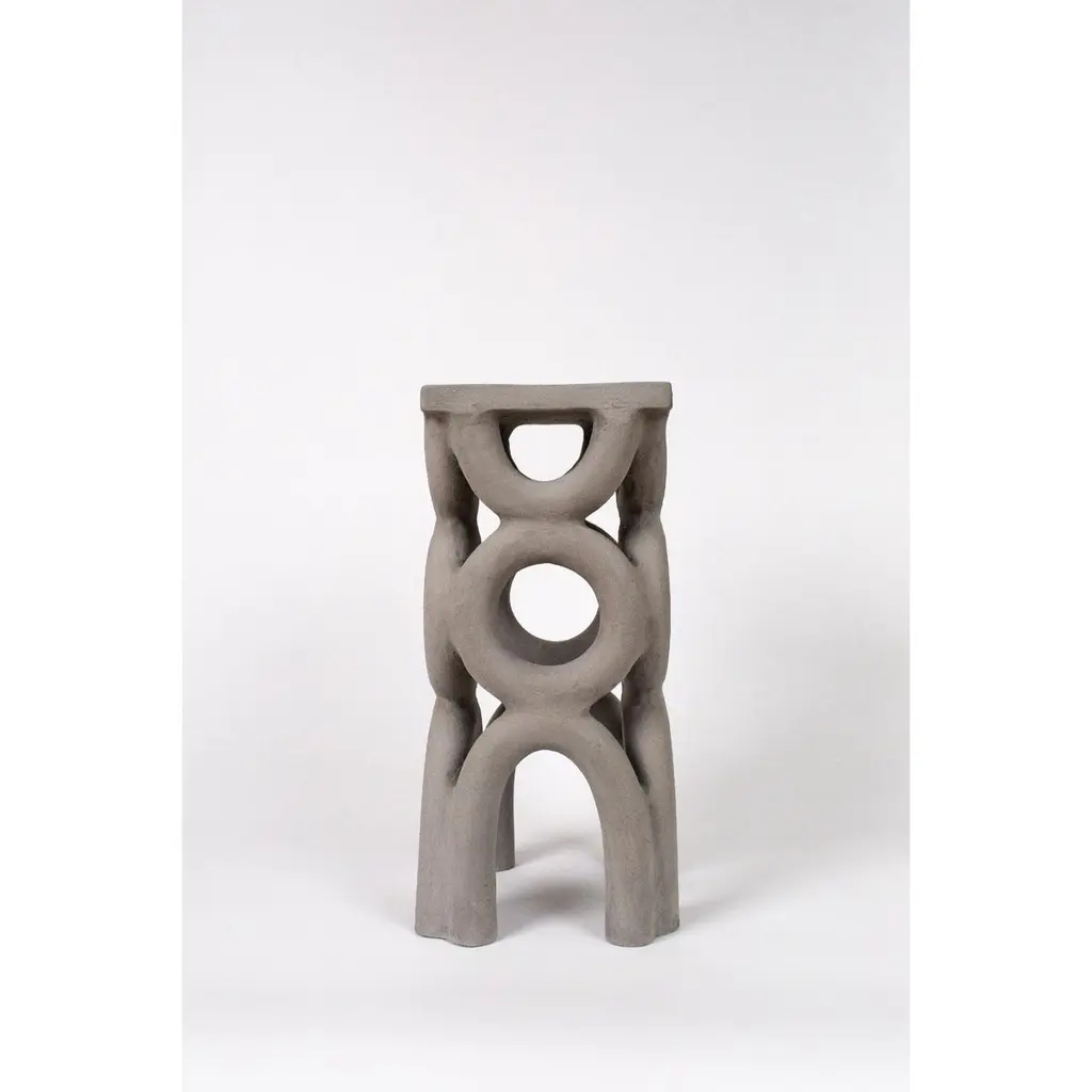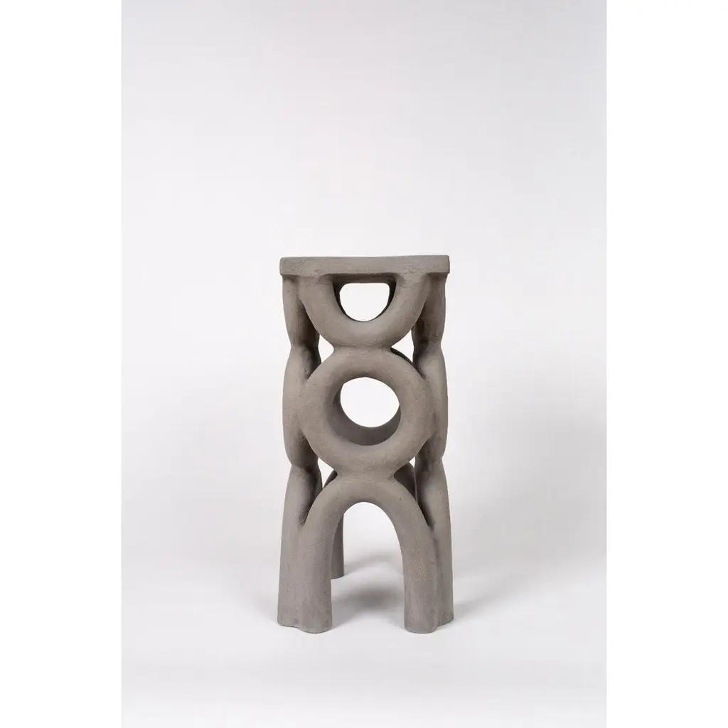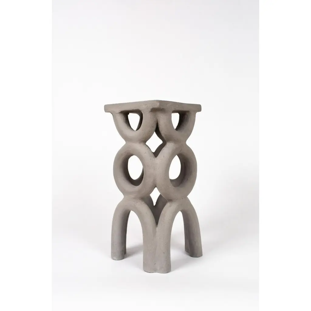 Unique arch square stool by Mesut Öztürk.Dimensions: W 20 x D 20 x H 40 cm.Materials: stoneware. "Arch stools are sculptural furnitures derived from the series Revak which is an attempt to create poetic architectural structures composed of arches. While the projected function is stool they can be used as side tables or pedestals. They are made of stoneware clay fired at high temperatures. As hand made design objects, Arch Stools can be produced unlimited upon commissions unlike the one-of-a-kind pieces of the Revak series. Each edition of a design may differ slightly from each other because of the imperfection of the hand building process. Mesut Öztürk was born in Bulgaria in 1989 and he migrated to Turkey with his family in the same year. He completed his Bachelor’s Degree in Faculty of Architecture at Yeditepe University, Istanbul. Later on, he completed his Master’s Degree in “History, Theory, Criticism in Architecture” at Istanbul Bilgi University with a dissertation about informal settlements of Istanbul. After working as an architect for a while, he started to work as a part-time lecturer at Istanbul Bilgi University. He conducted Architectural Design Studio, Architectural Drawing and Ceramics, Craft, Design courses. He quit his PhD program in Urban Planning and has started to work on ceramics.In his art practice, Öztürk aims to explore anonymous human creations which are the outputs of collective will and labor in human history that leads him to observe about human nature. These creations could be vernacular architecture, informal urban settlements or prehistoric pottery. The artist seeks poetical ways for translating the authentic features which he finds in these timeless phenomenons into a contemporary form language.He is currently based in Kadiköy, Istanbul, Turkey.".