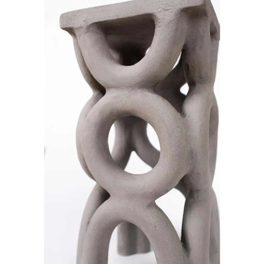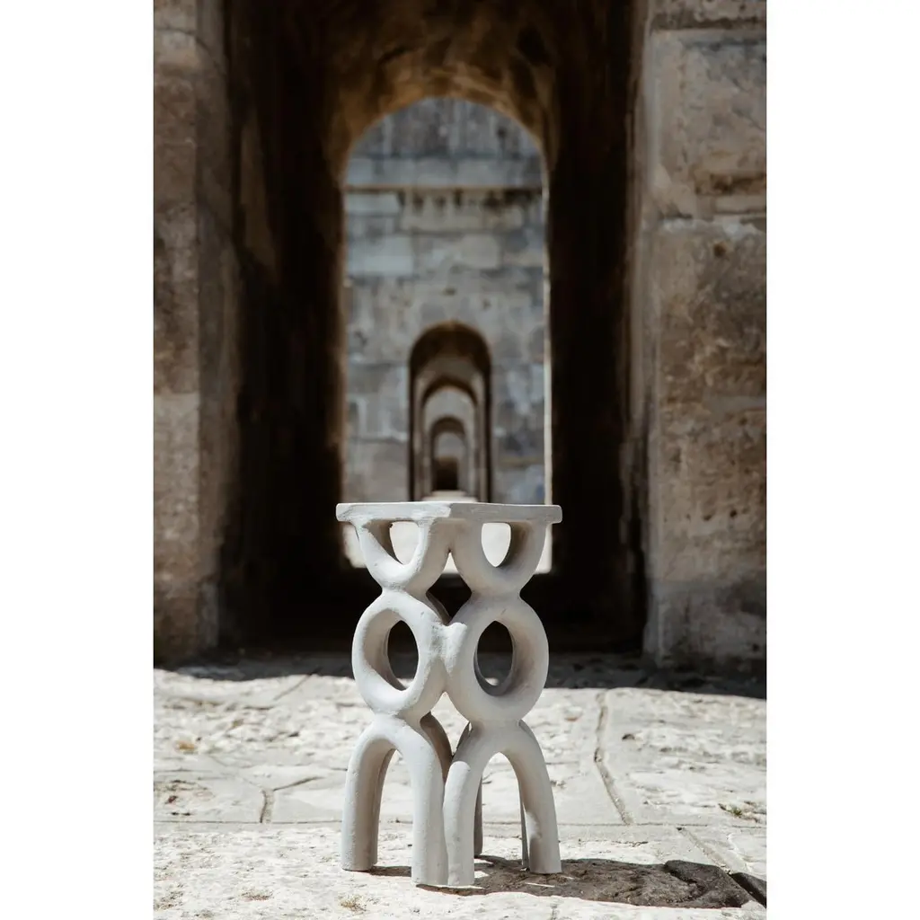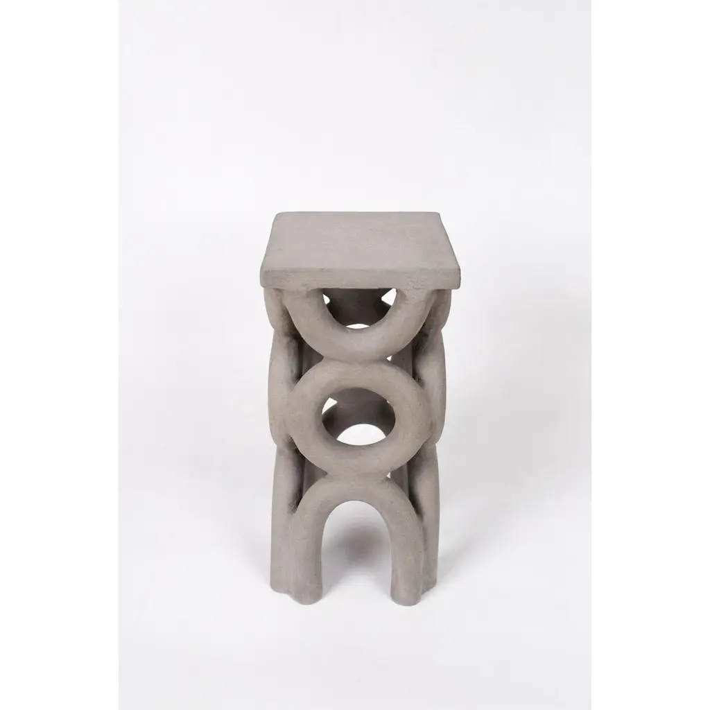 Unique arch square stool by Mesut Öztürk.Dimensions: W 20 x D 20 x H 40 cm.Materials: stoneware. "Arch stools are sculptural furnitures derived from the series Revak which is an attempt to create poetic architectural structures composed of arches. While the projected function is stool they can be used as side tables or pedestals. They are made of stoneware clay fired at high temperatures. As hand made design objects, Arch Stools can be produced unlimited upon commissions unlike the one-of-a-kind pieces of the Revak series. Each edition of a design may differ slightly from each other because of the imperfection of the hand building process. Mesut Öztürk was born in Bulgaria in 1989 and he migrated to Turkey with his family in the same year. He completed his Bachelor’s Degree in Faculty of Architecture at Yeditepe University, Istanbul. Later on, he completed his Master’s Degree in “History, Theory, Criticism in Architecture” at Istanbul Bilgi University with a dissertation about informal settlements of Istanbul. After working as an architect for a while, he started to work as a part-time lecturer at Istanbul Bilgi University. He conducted Architectural Design Studio, Architectural Drawing and Ceramics, Craft, Design courses. He quit his PhD program in Urban Planning and has started to work on ceramics.In his art practice, Öztürk aims to explore anonymous human creations which are the outputs of collective will and labor in human history that leads him to observe about human nature. These creations could be vernacular architecture, informal urban settlements or prehistoric pottery. The artist seeks poetical ways for translating the authentic features which he finds in these timeless phenomenons into a contemporary form language.He is currently based in Kadiköy, Istanbul, Turkey.".