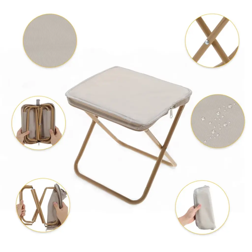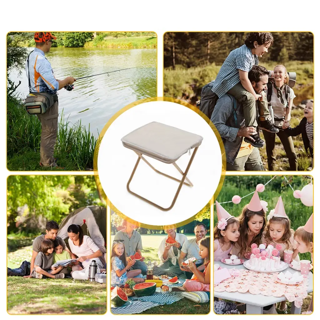 Feature:The camping stool features a convenient foldable design that allows it to be easily stored in a zippered bag, making it suitable for transport in a car or to outdoor activities. Its lightweight nature and space-saving capabilities make it a versatile companion for any adventure.Crafted from quality Oxford fabric, this portable folding stool is tough, tear-resistant, and stable. It can withstand rugged use and is easy to clean.With its high-strength steel legs, the camping chair offers exceptional stability on diverse terrains, making it an essential accessory for explorers. Its robust build ensures lasting performance, no matter where your journey takes you.This portable camping stool is incredibly lightweight, adding minimal bulk to your backpack. Whether you're hiking, camping, fishing, picnicking, or simply relaxing in your garden, this portable seat provides instant comfort and convenience.Ideal for a wide range of indoor and outdoor activities, this portable chair is suitable for various settings, including bedrooms, offices, as well as outdoor adventures like camping, fishing, barbecues, and beach outings. Its versatility makes it a must-have item for any activity that requires a comfortable seat.Specification:Material: Oxford Fabric, Carbon SteelPackage List:1 Pc Portable Camping Stool