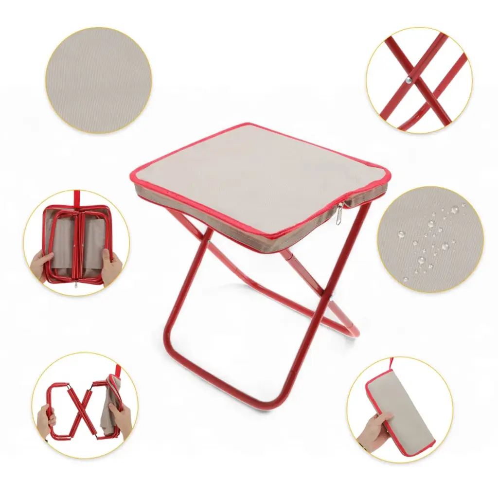 Unique Bargains Portable Camping Stool Khaki Red 1 Pc