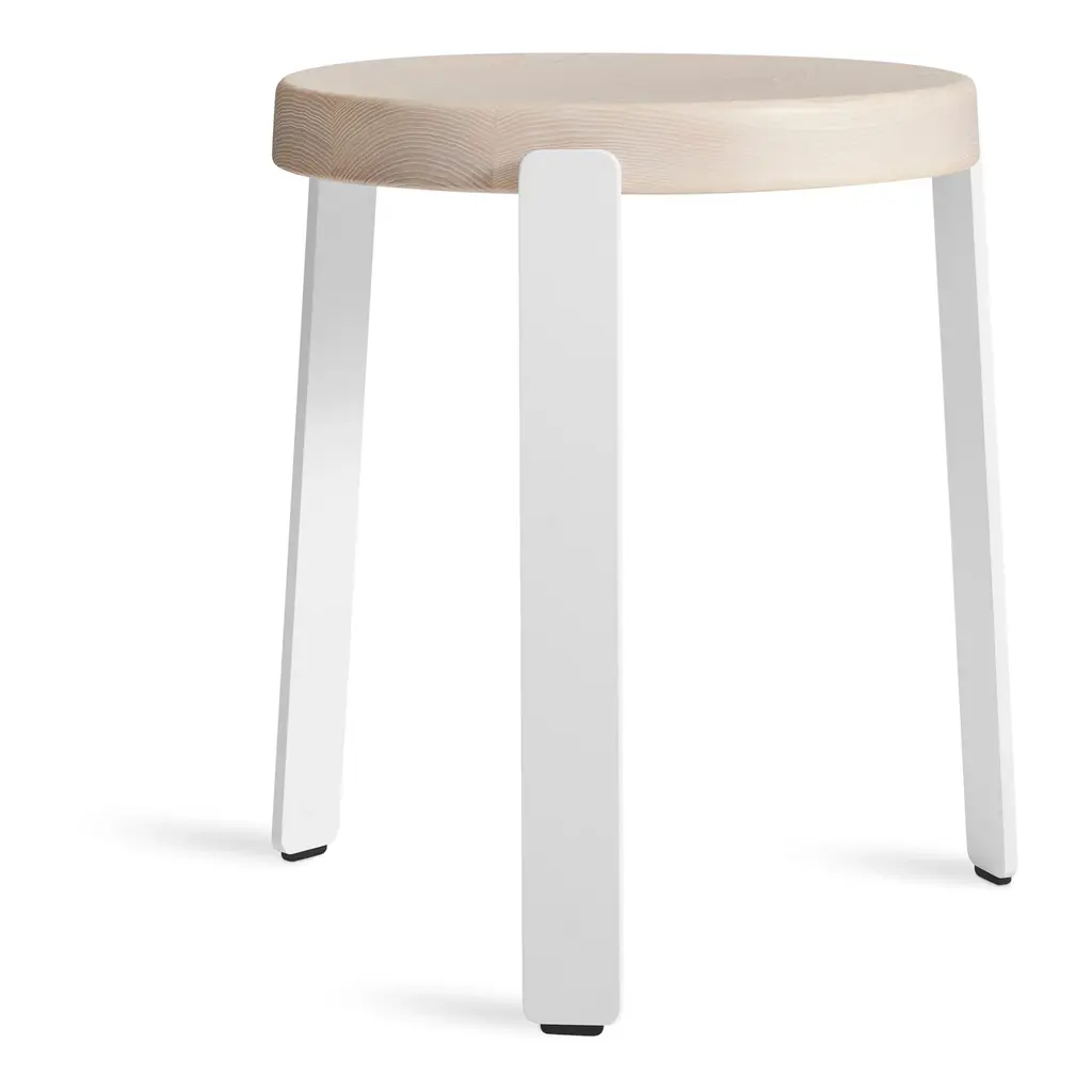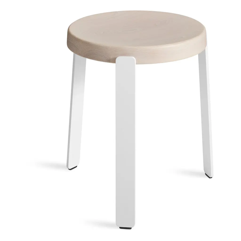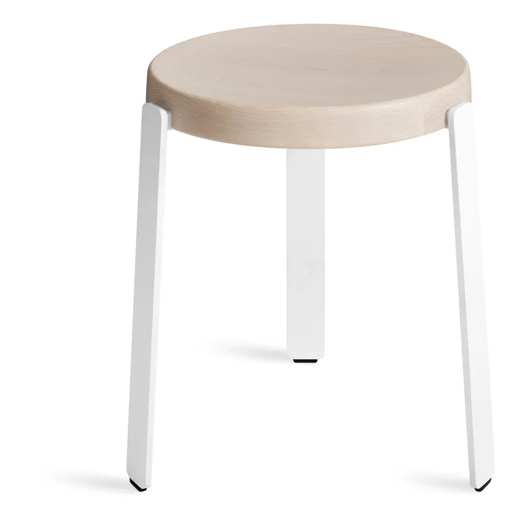 Sit your butt down. Powder-coated steel legs grip a chunky wood top to form a subdued silhouette and a simple stool that works wherever. Three legs provide a sturdy tripod of color and delight. Stackable and practical.