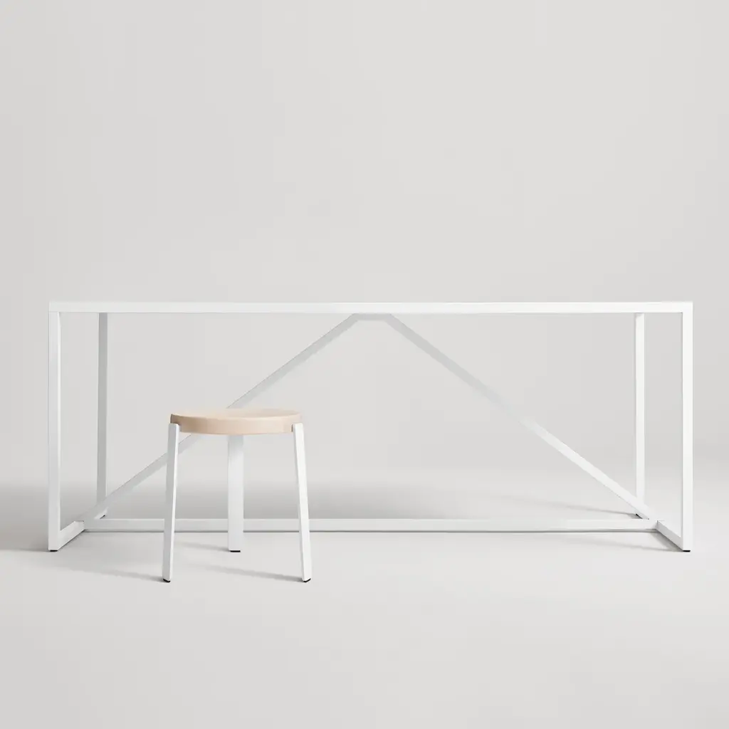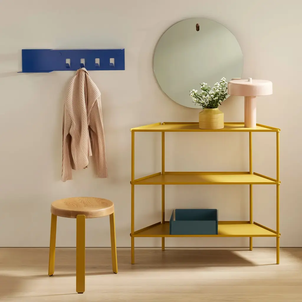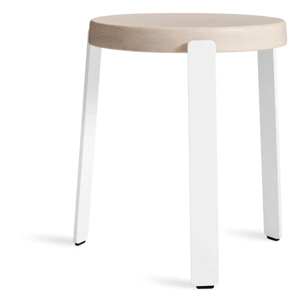 Sit your butt down. Powder-coated steel legs grip a chunky wood top to form a subdued silhouette and a simple stool that works wherever. Three legs provide a sturdy tripod of color and delight. Stackable and practical.