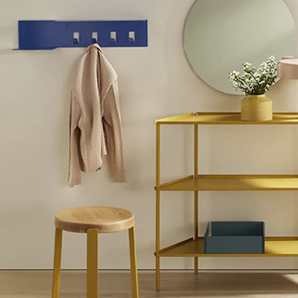 Complement your refined taste with the smooth design of the Unit Stool by Blu Dot. Fine steel beautifully contours into a collection of well-spaced legs. These legs properly balance a rich wood top with ease so that you can readily elevate yourself whenever the need arises. The Unit Stool gives your home a look of uniformity that blends in with your existing décor. Place this furnishment in your kitchen or living room and access your in-home accessories effortlessly.