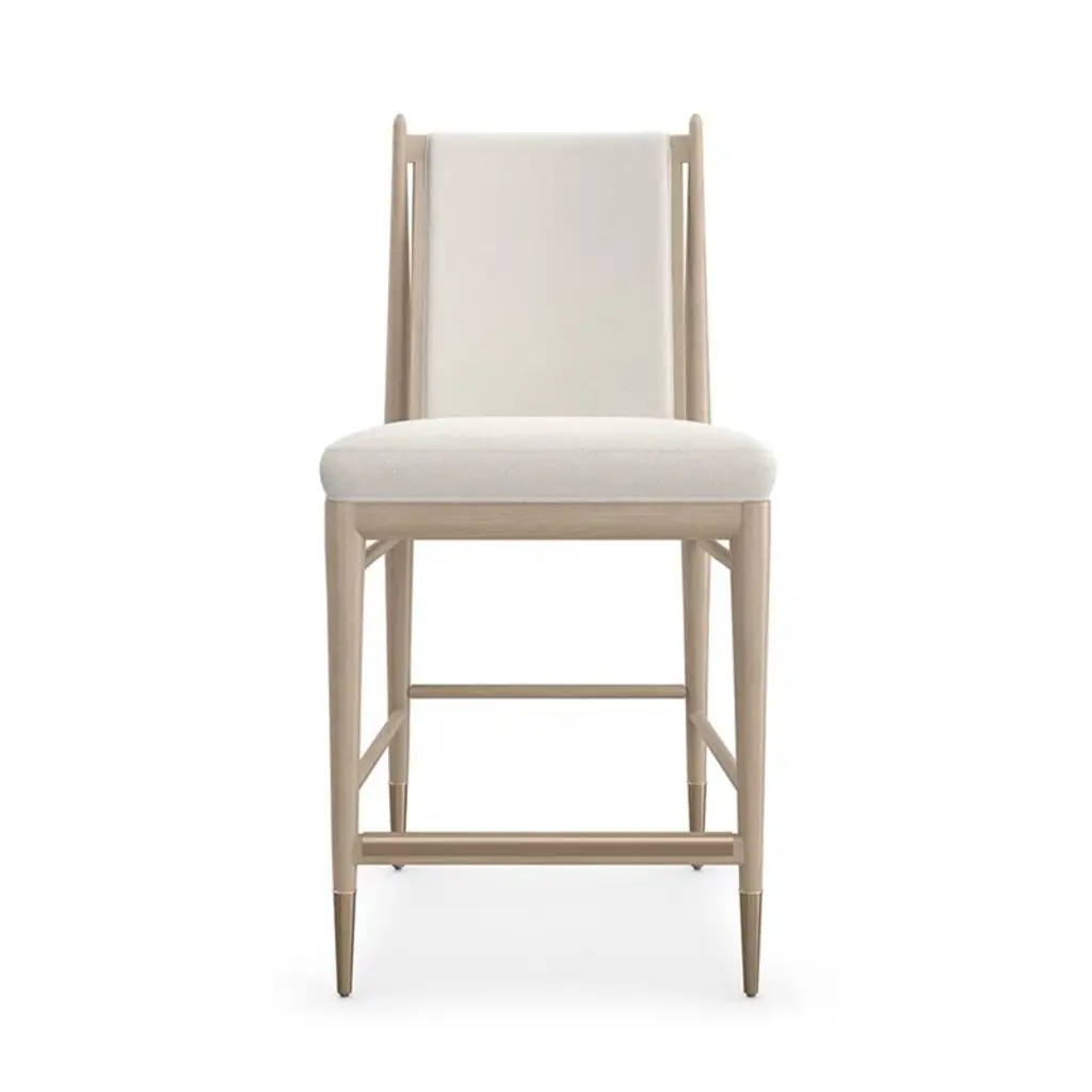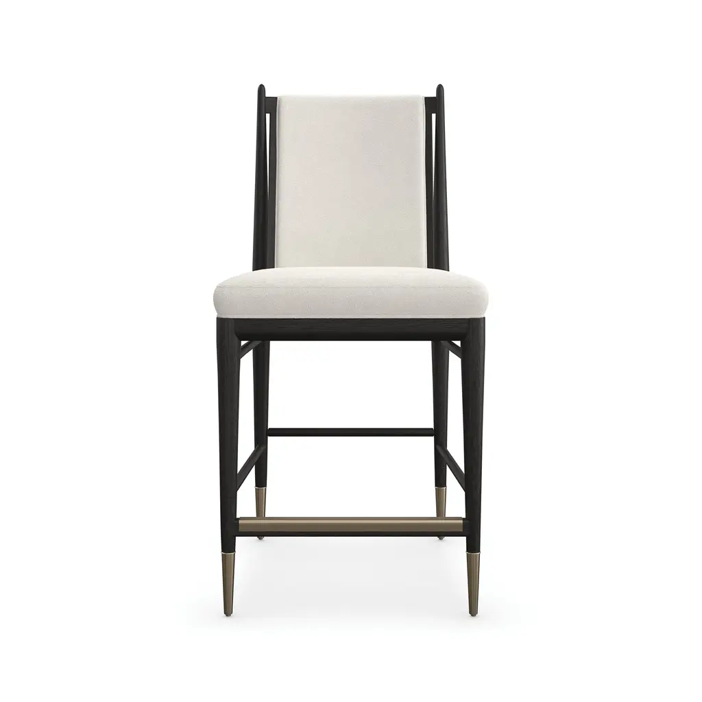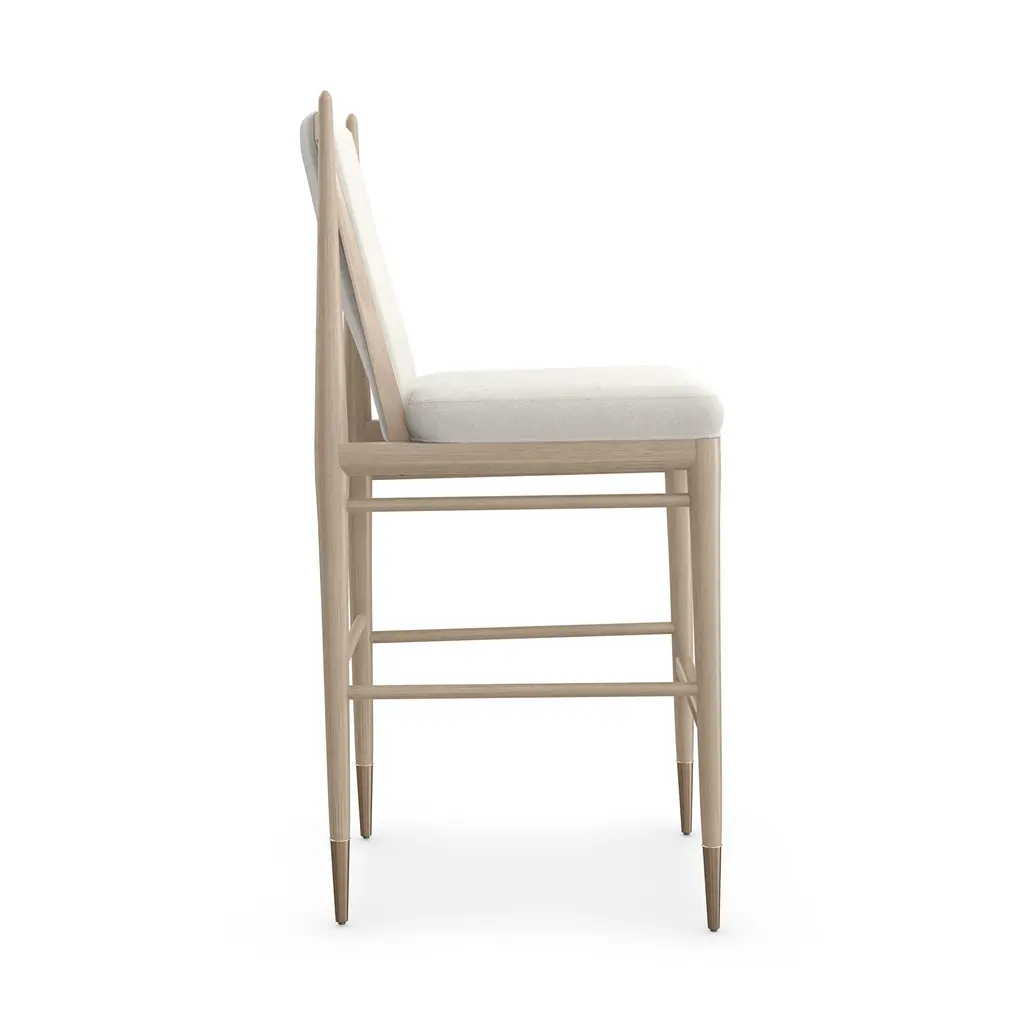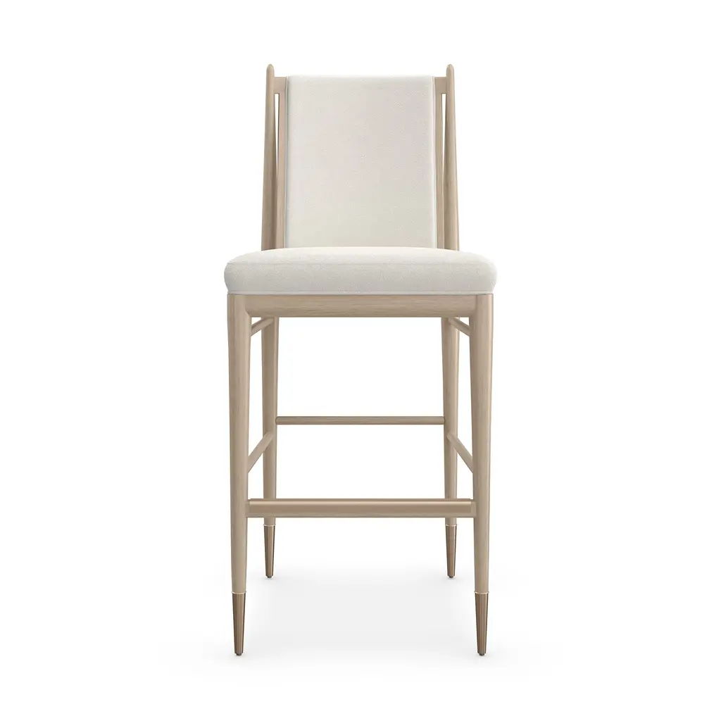 Experience the perfect blend of elegance and function with the Unity Stool from Caracole. The ivory boucle fabric and Lucent Bronze metal ferrules create a fresh, modern look that adds sophistication to any dining or entertaining space. Its versatile design makes it perfect for both special occasions and everyday use. Highlights