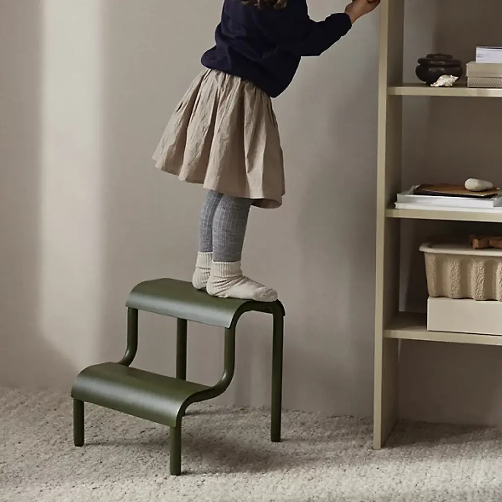 The Up Step Stool from Ferm Living is here to give you a boost. It is composed of powder-coated iron presented as tubes that curve into legs. The curved profile forms an organic silhouette, adding contemporary charm to the piece without compromising functionality. A rough surface coating adds an extra layer of protection to the dual steps by helping prevent slipping. Place this fixture close to your often-used essentials and stay easily within reach.