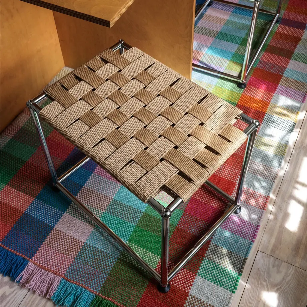 ExclusivesWS Stool + Lower PanelWoven Structures CollectionA collaboration with New York-based industrial designer Henry Julier, Woven Structures is a collection of objects that integrates Danish paper cord into the USM Haller system for the first time, celebrating the interplay of contrasting materials that each hold a place of importance within the world of furniture design.DimensionsH 17.375in / 441mmW 20.5in / 523mmD 14.75in / 373mmWeight5.15 kgs / 11.33 lbs