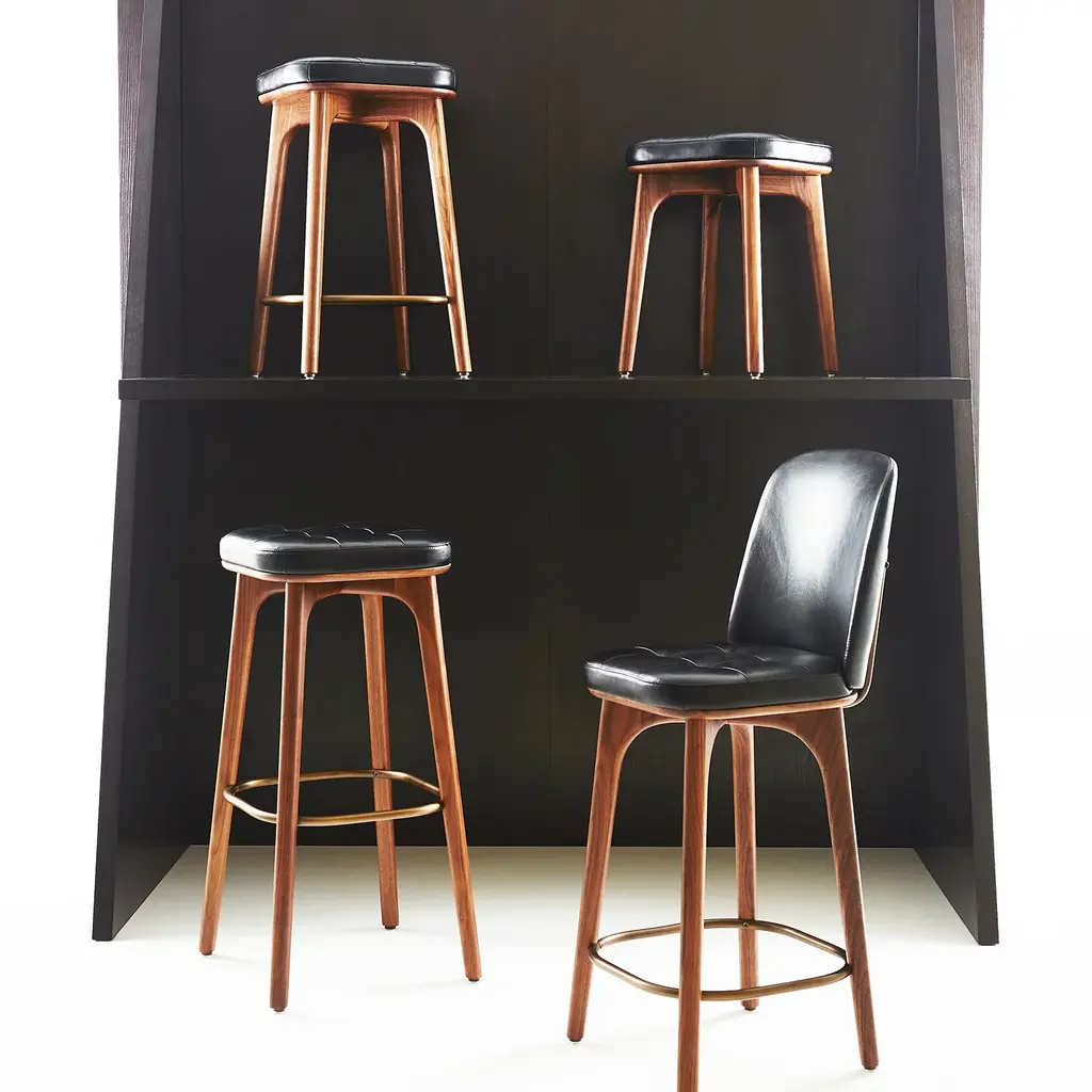 Unobtrusive but sophisticated, Utility Stool H460 makes for splendid extra seating in a variety of settings. With traces of an Asian sensibility—yet resolutely modernist in outlook—Stellar Works' design directors Lyndon Neri and Rossana Hu put a straightforward spin on traditional materials. With its graceful wood legs, brass-finished footrest and luxe upholstered seat, Utility Stool melds with a variety of furnishing styles and resolutely lives up to its name in any environment, from high-end hospitality to residential projects.