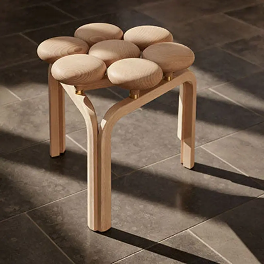 The Utzon Stool is a captivating creative expression by acclaimed Danish architect Jørn Utzon. It was designed during the same period as the Sydney Opera House. The stool is a meticulously crafted functional sculpture. Decorative in appearance yet deceptively comfortable. Crafted with oiled solid beech wood, veneer beech wood, and adorned with beautiful brass detailing. The stool exudes an extrovert playfulness in its fascinating appearance.